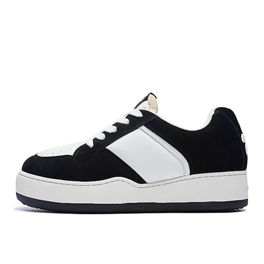 WHITE BLACK LOW TOP VEGAN LEATHER TRAINERS