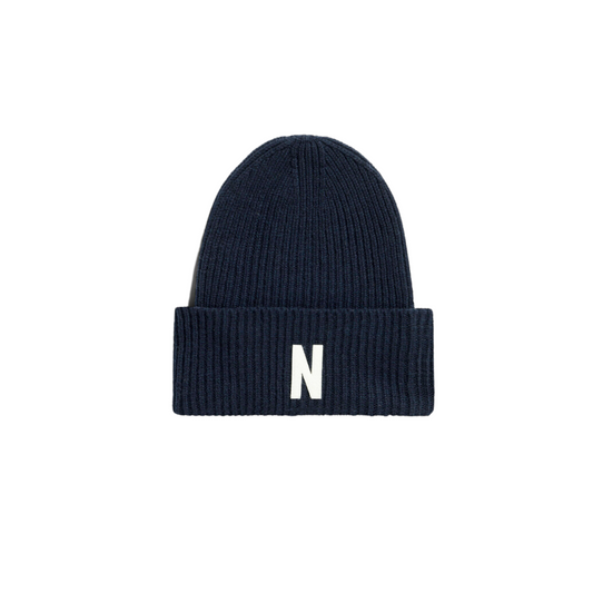 DARK NAVY MERINO LAMBSWOOL RIB N LOGO BEANIE