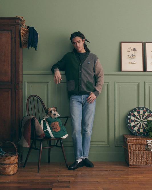 KHAKI JACQUARD KNIT CAMP PULLOVER