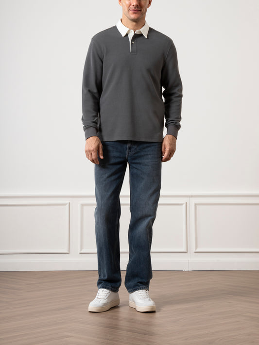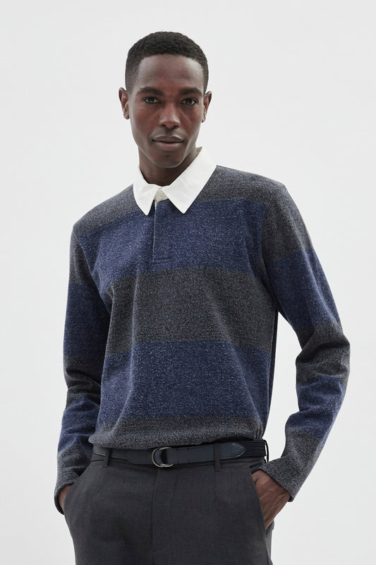 NAVY RUBEN BRUSHED JERSEY RUGBY LONG SLEEVE POLO SHIRT