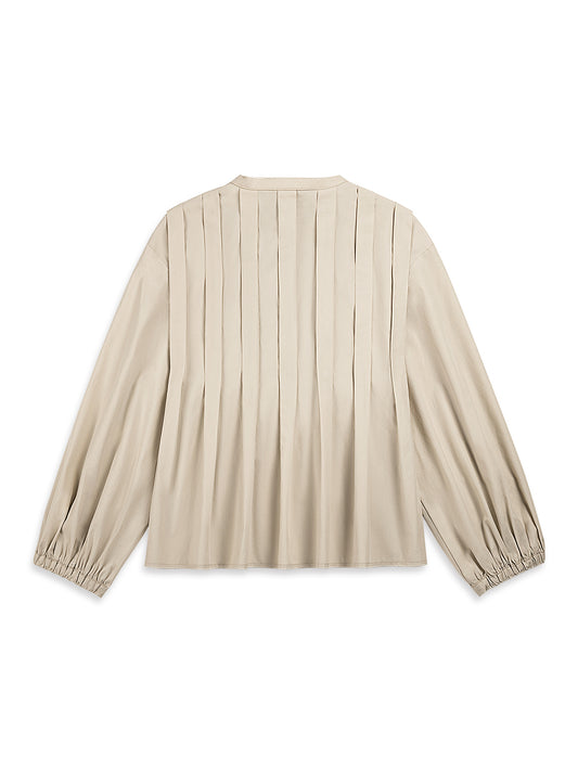 PLEATED BALLOON SLEEVE BLOUSE