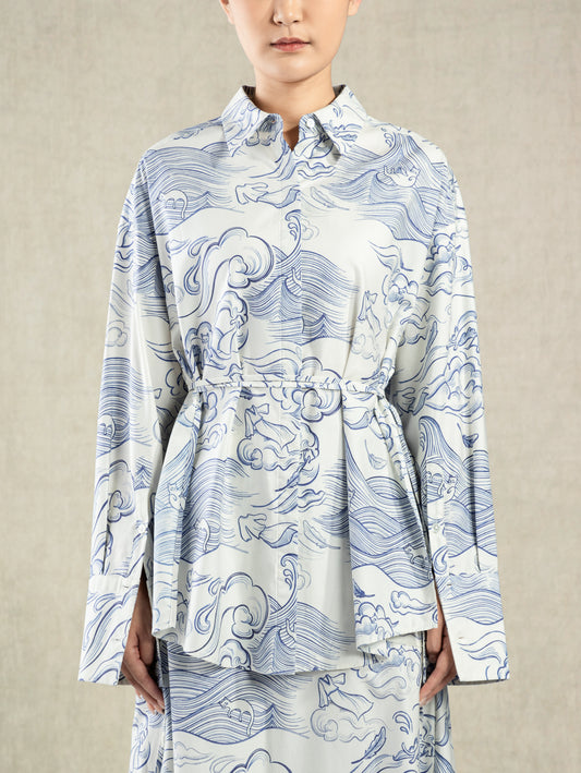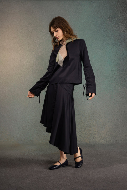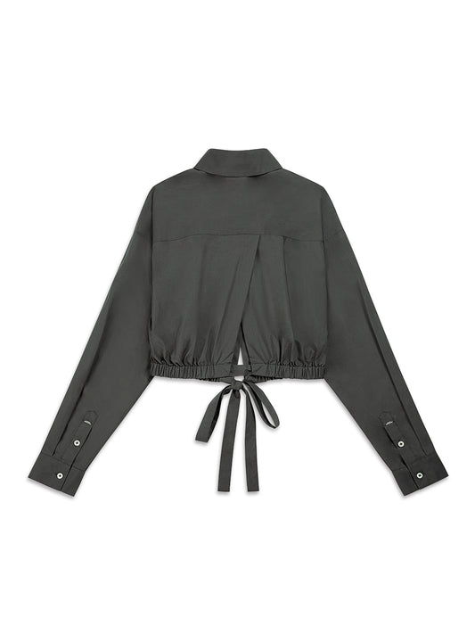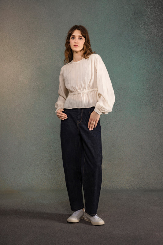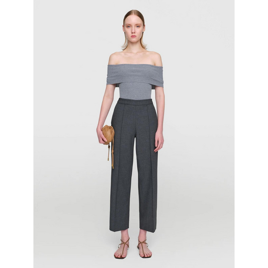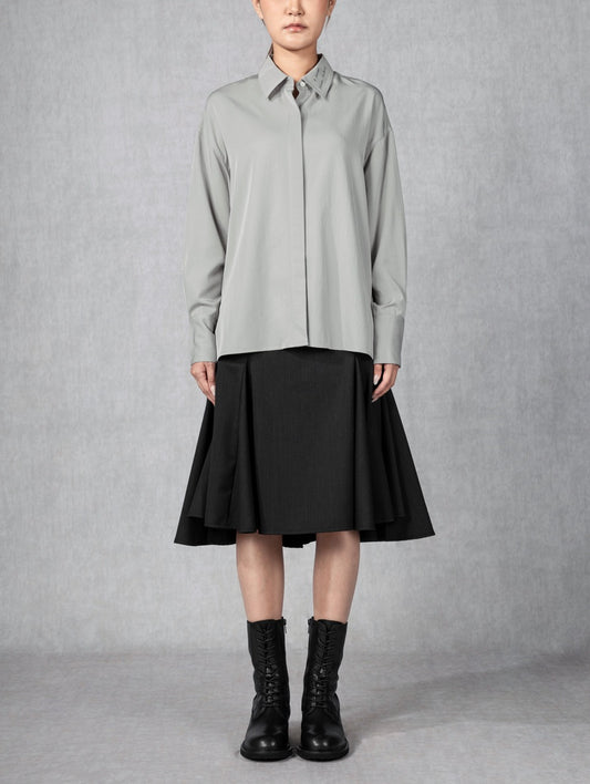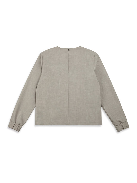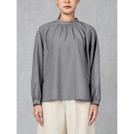 BAND COLLAR GATHERED BLOUSE HEATHER GREY
