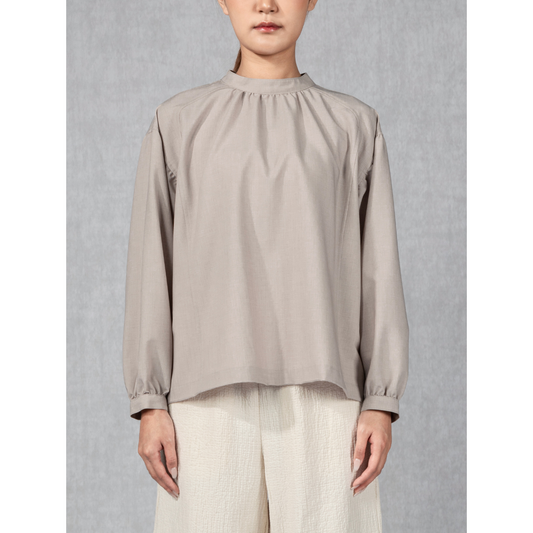 BAND COLLAR GATHERED BLOUSE HEATHER TAUPE
