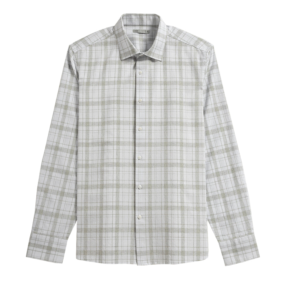 The Adrian Heather Check Shirt features a layered checkered pattern on textured poplin fabric, offering soft comfort and breathability. Its relaxed spread collar and broken-in feel make it perfect for simple to smart casual wear, with easy layering options for added utility and function.