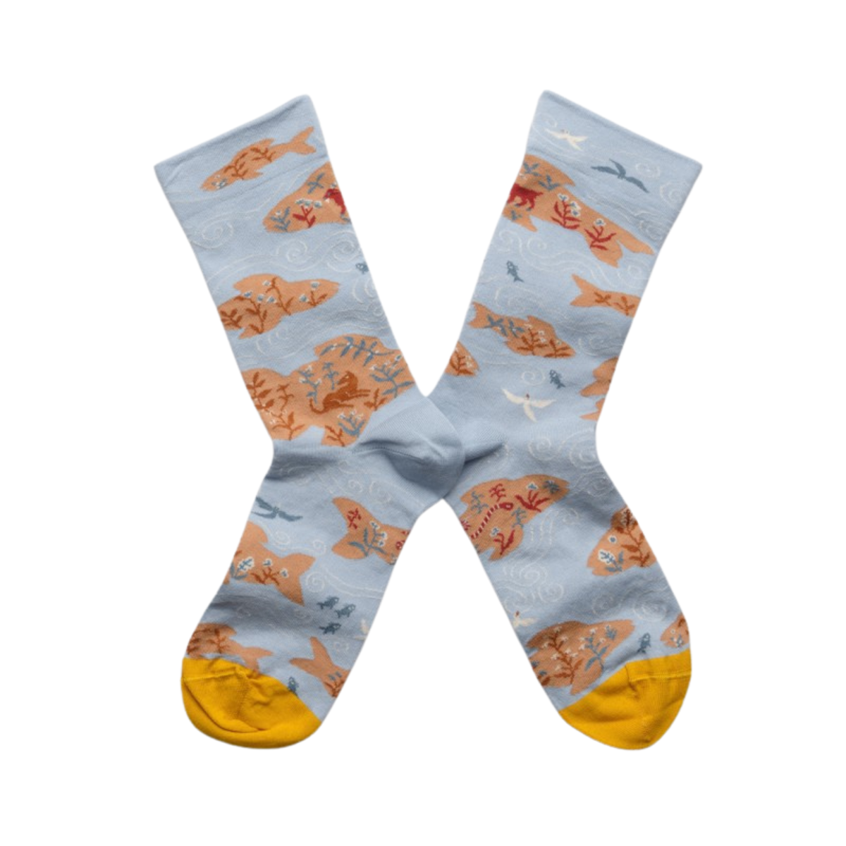 These socks by Bonne Maison feature a dreamy 'Iles Ciel' (Sky Islands) design for all.