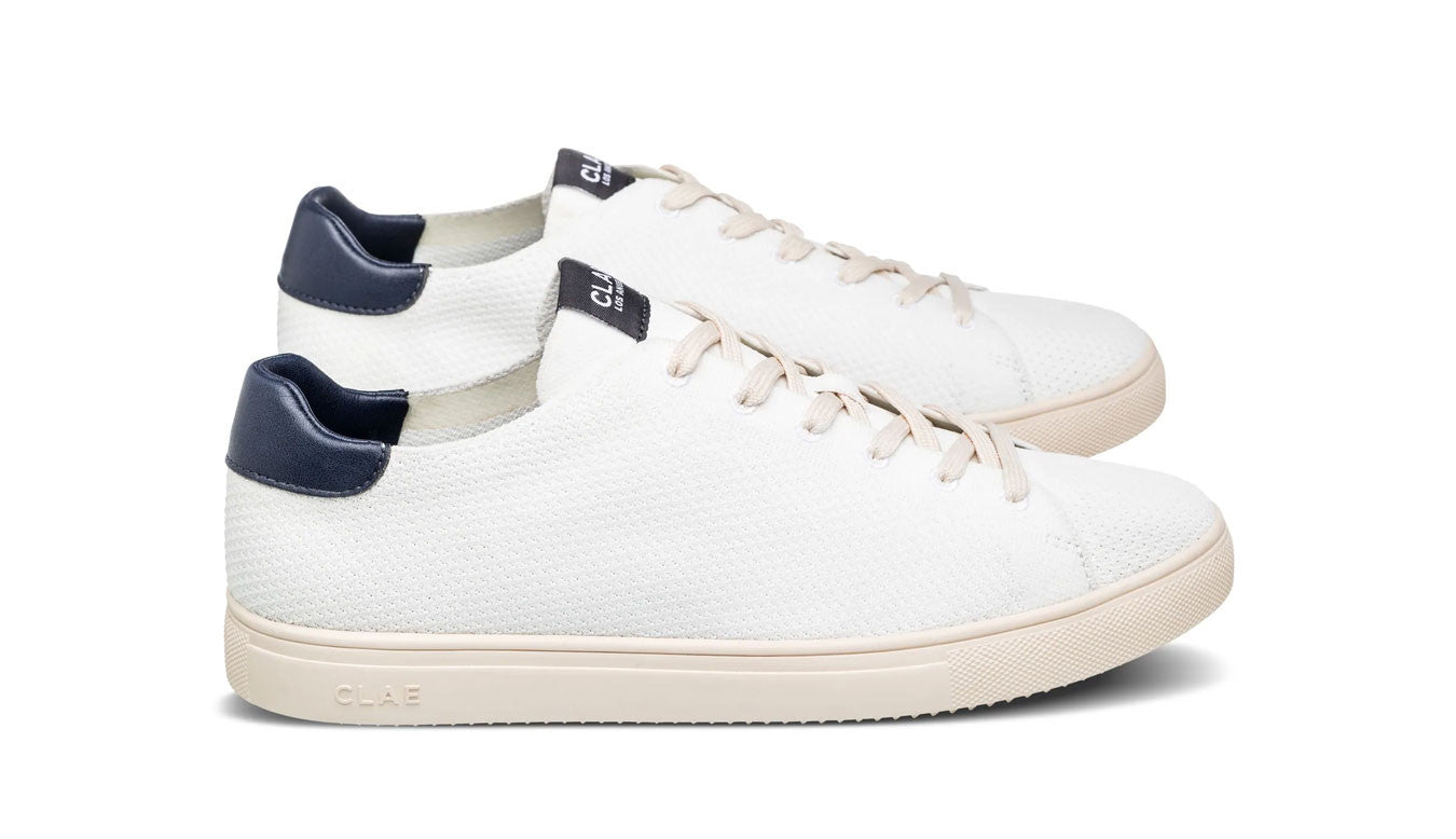 These knit sneakers by CLAE feature a white and navy colourway with cactus detailing.