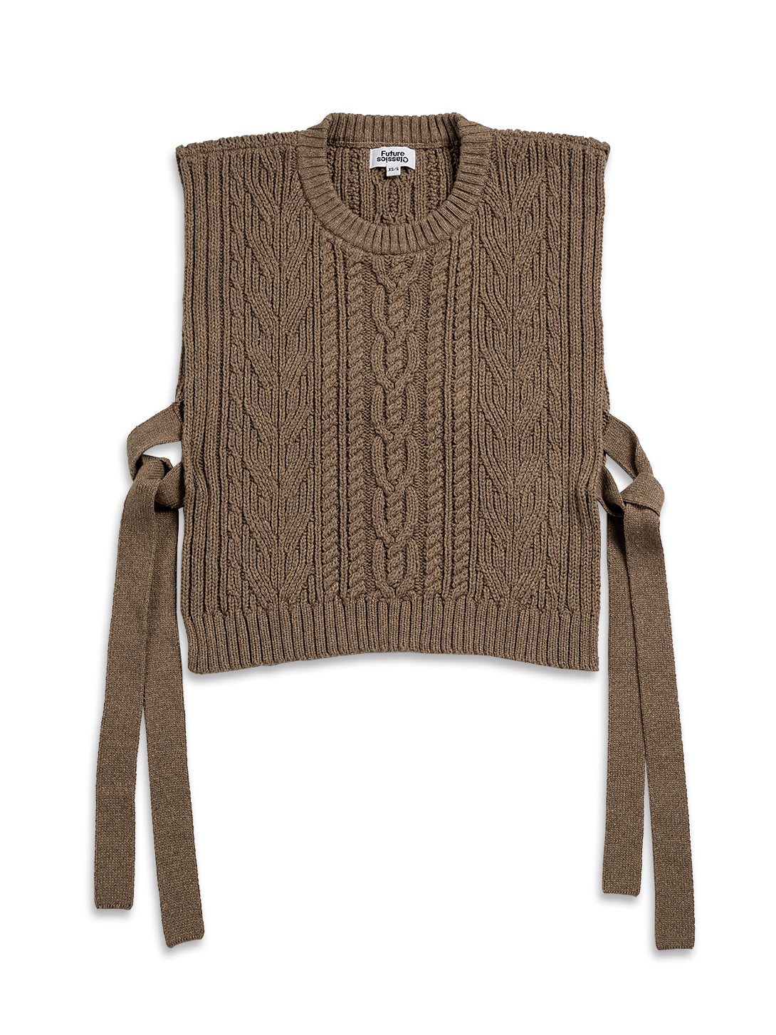 Our stylish Cropped Sweater Vest is cable knitted with a heavy gauge in classic cable pattern. Round neck and with knitted ribbon ties on each side, versatile to layer with any outfit to elevate your winter outfit and add warmth to your wardrobe. Pair with skirt for an elevated and sophisticated signature FC winter look.