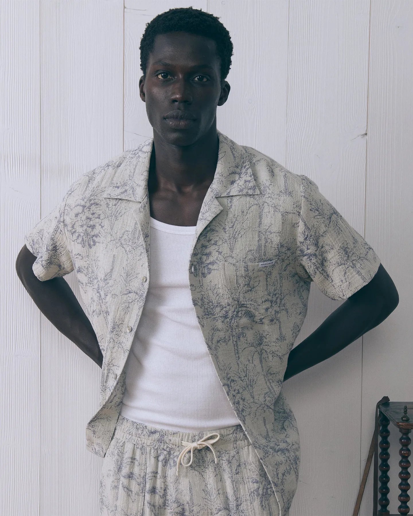 Our Germain short-sleeved shirt has a straight cut, a chest pocket, a shark collar and Maison Labiche engraved buttons.