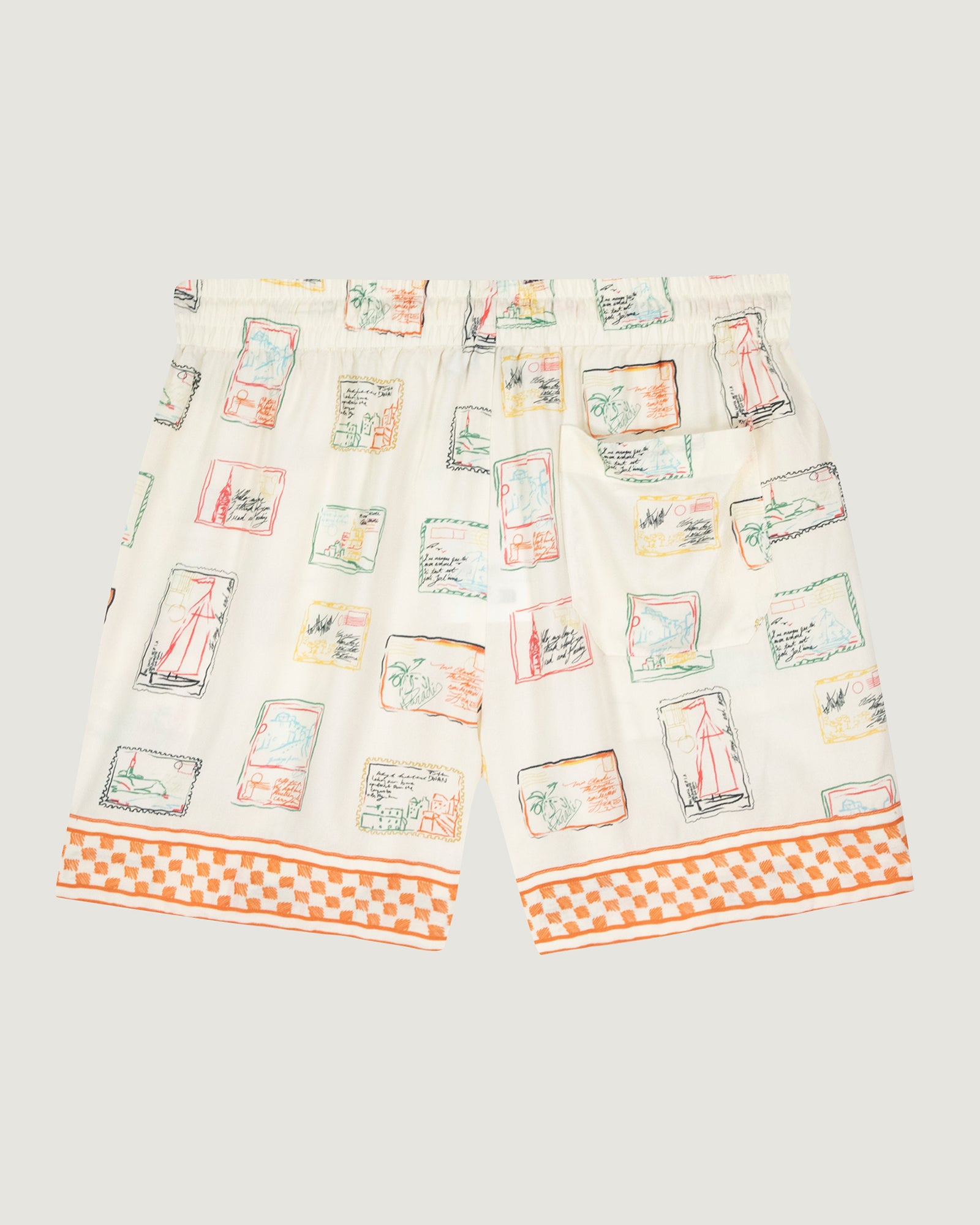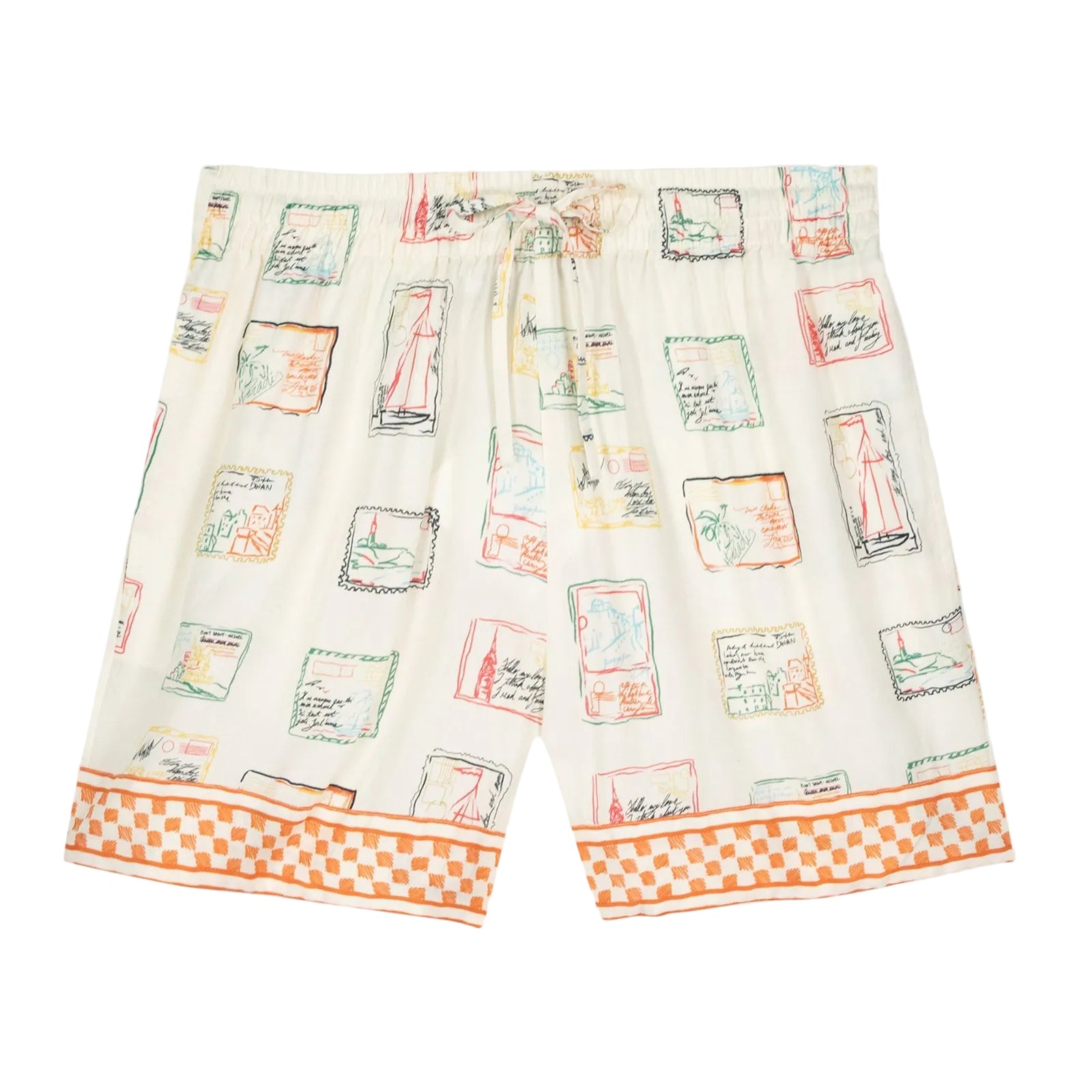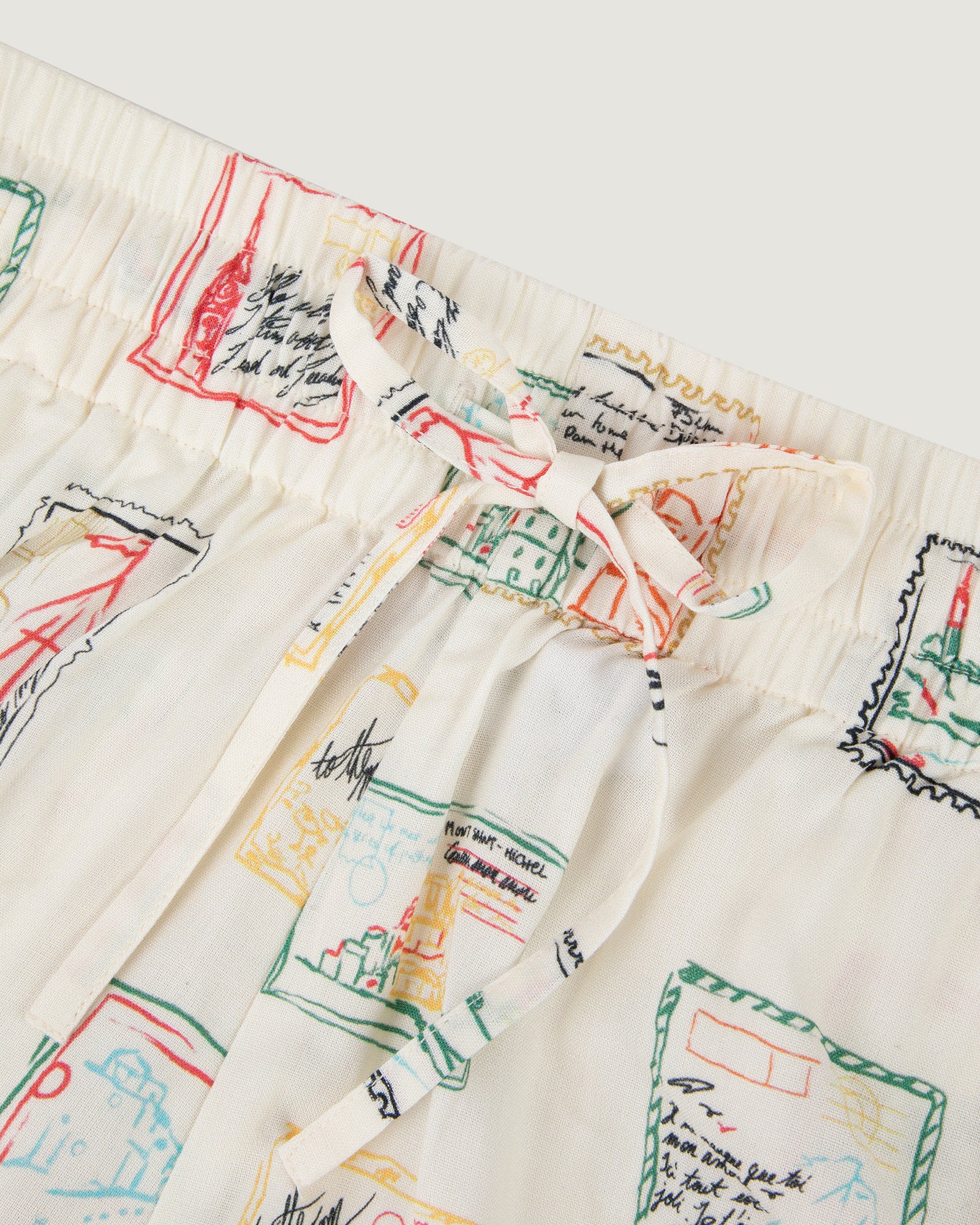 Our Herelle shorts have a classic cut, two side pockets, and an elasticated waistband with an external drawstring. They feature the Maison Labiche signature label. Its printed material illustrates a correspondence.