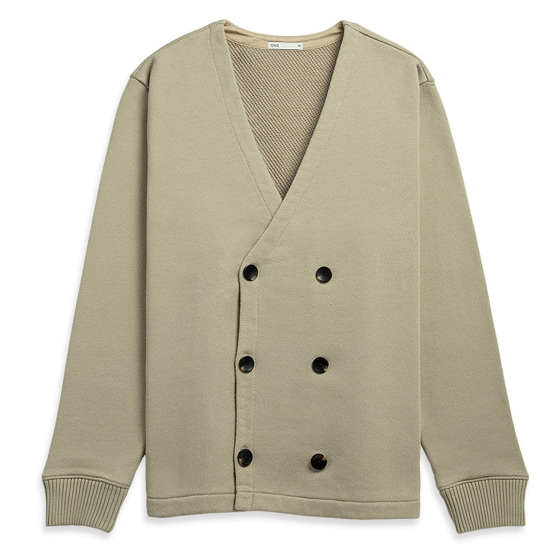 Made with a heavy weight fabric that's smooth to the touch, this regular fit cardigan is a perfect mid-layer piece for stylish and secure warmth. Available in stunning khaki and black color options, the crescent neckline of this new, refined seasonal cardigan creates an elevated look.