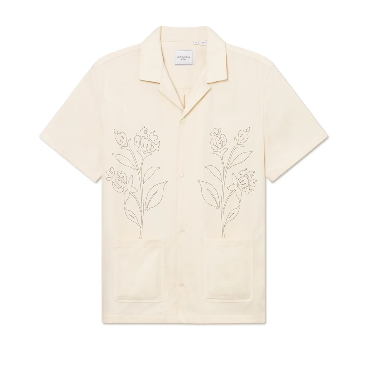 A heavy cotton blend short sleeve, the Kingsley is decorated with oversize flower embroidery on the front and finished with a relaxed camp collar.