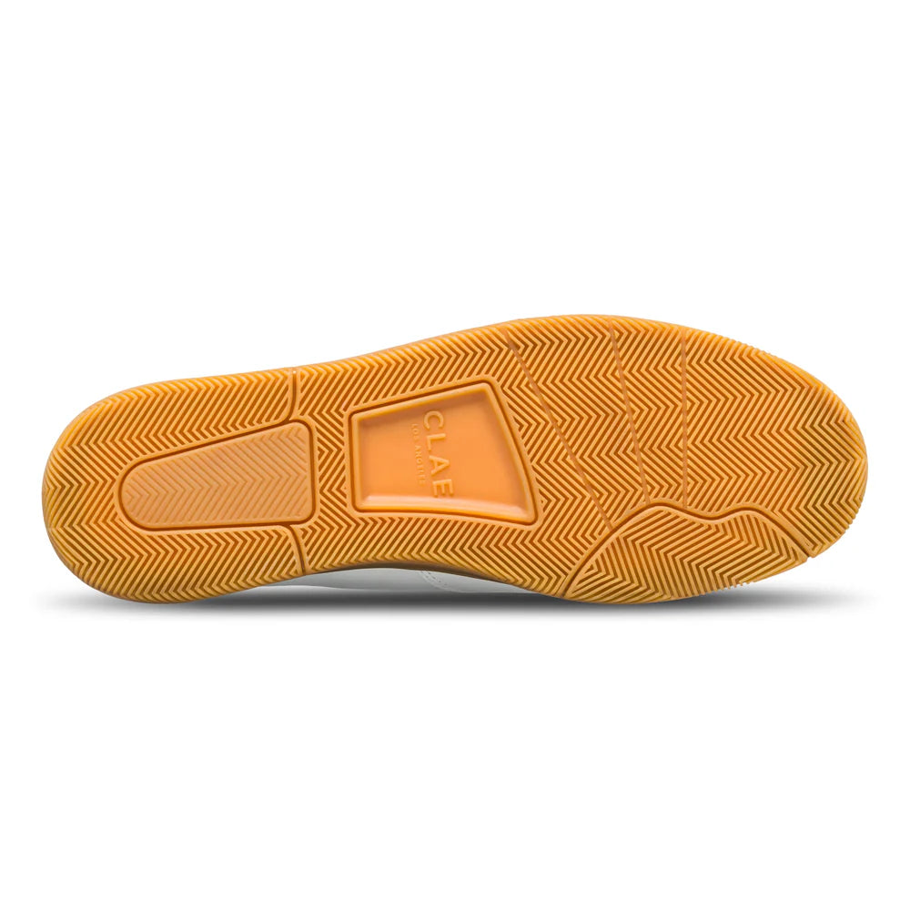 These sneakers by CLAE feature a clean white leather upper with a light gum sole.