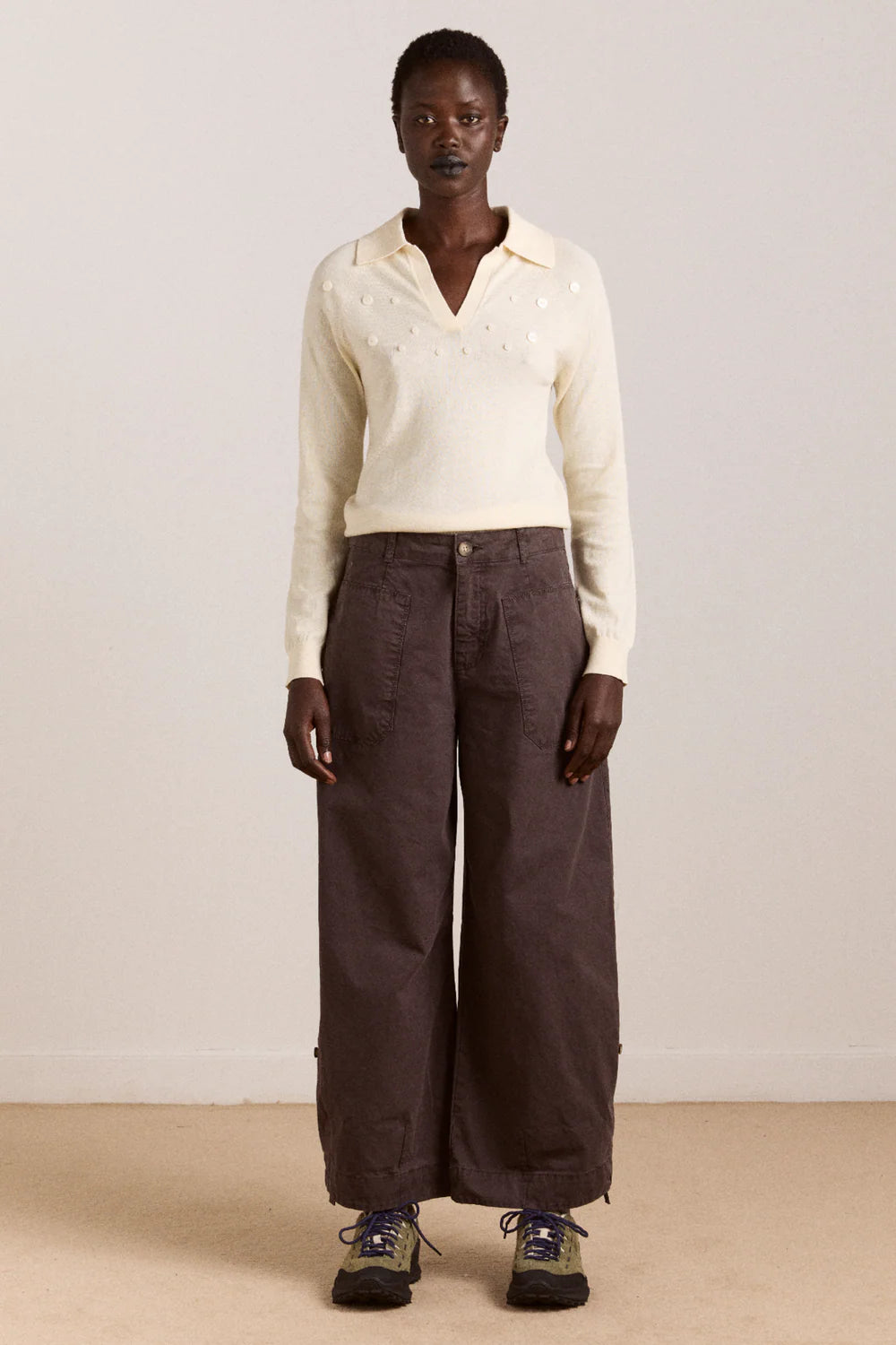 Meet your new everyday essential, the Charcoal Mika Trouser. Designed with a flattering barrel leg silhouette and made from 100% organic cotton, these are the trousers you'll want to live in. An adjustable leg length with button-tab lets you wear them full or rolled up, depending on your mood. Finished with a zip fly, button closure and contrast floral embroidery on the back pocket. Due to the special dye process used to create this finish, some loss of colour may occur after washing. We recommend washing inside out at 30 degrees.