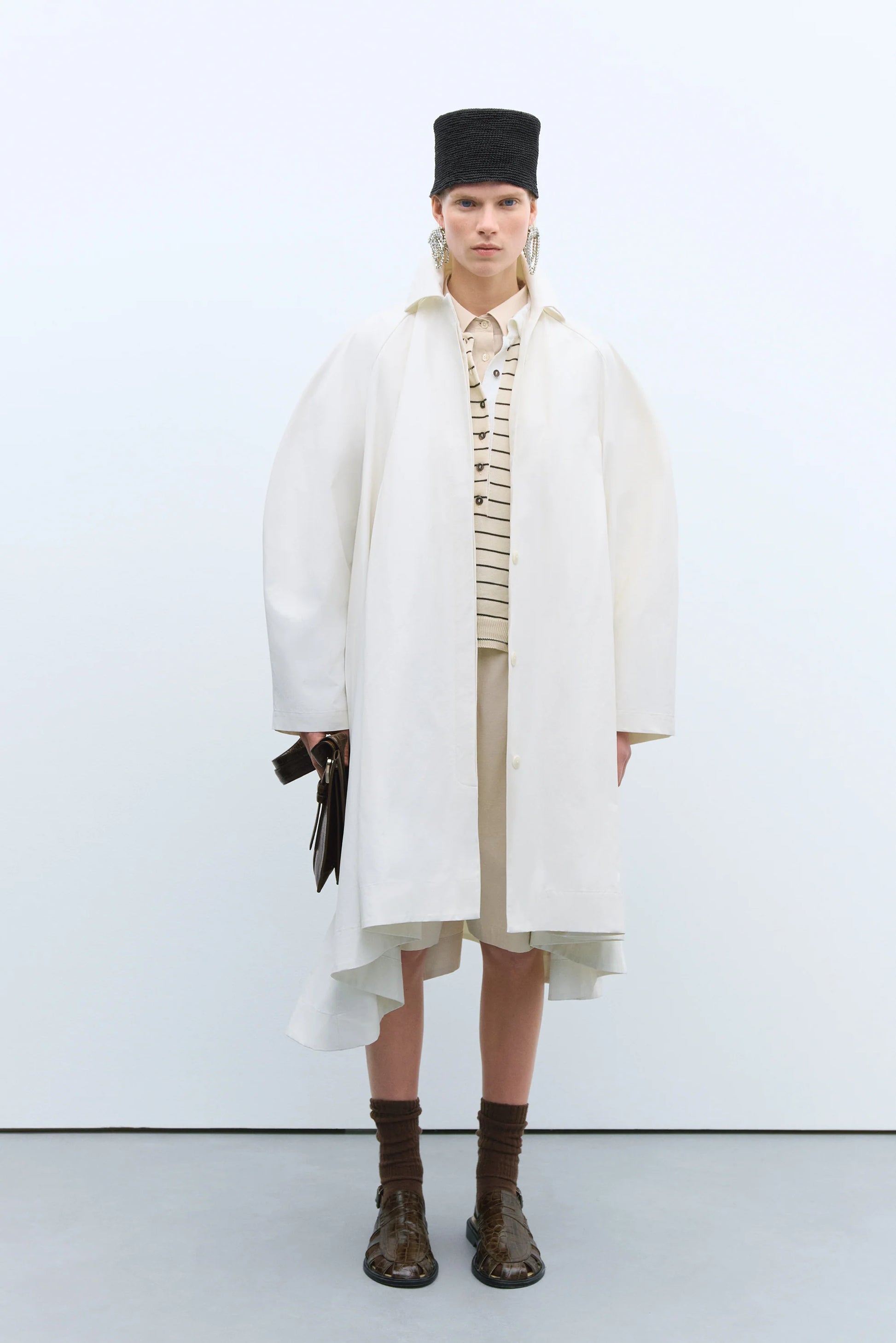 A stylish oversized polo with a classic buttoned polo collar. Features brown stripes on an ecru background, accented with a contrasting white collar and black stripe detail that matches the striped cuffs. Small side buttons add a charming touch to this versatile piece, perfect for relaxed yet polished outfits.