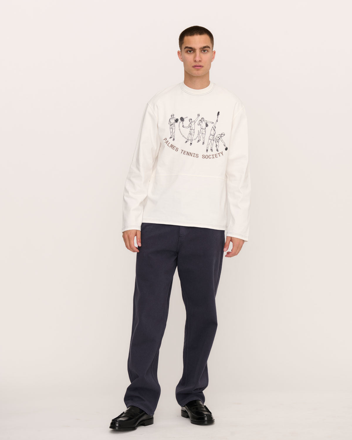 Cut from heavy 300gsm / 9oz. Cotton. Screenprinted artwork on front with contrast stitching across its two-panel construction.