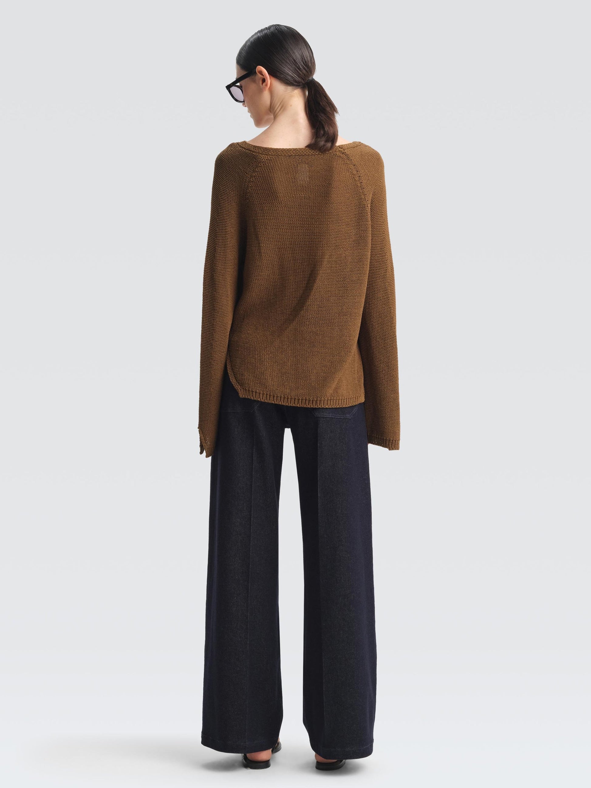 As cool as it gets, this cotton pullover is knitted in an open-gauge pattern, giving it a beautifully textured, airy finish. Cut in a relaxed shape, its flared bell sleeves enhance the nonchalant appeal. Pair it with your favorite denim or shorts for effortless off-duty style.