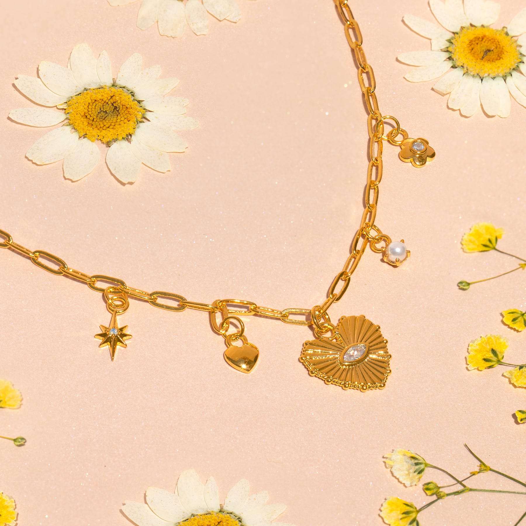 The Starry Heart Necklace is love at first twinkle. With a charm lineup of hearts and stars, it’s basically the night sky shooting its shot. Whether you’re feeling starry-eyed or head over heels, this necklace is here to steal hearts and maybe a few double takes too.