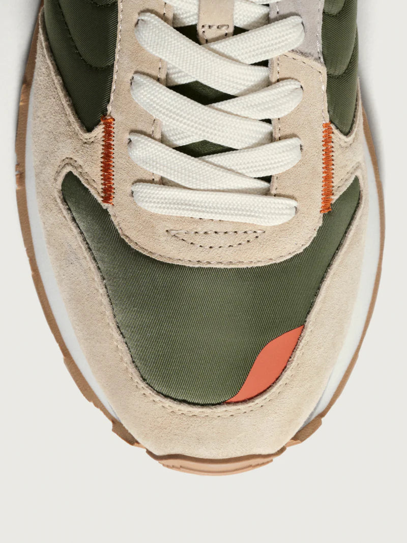 Inspired by athletes, created for your daily life. We love these sneakers with their balanced mix of leather and textile, providing the resistance of a retro sports shoe with the aesthetics of contemporary fashion. The robust rubber sole is designed for everyday use, ensuring comfort with every step. The pink tones and green details add character and freshness to the silhouette. Combine them with a bomber jacket for an athletic-chic look, or with jeans and a shirt for a more urban and relaxed touch.