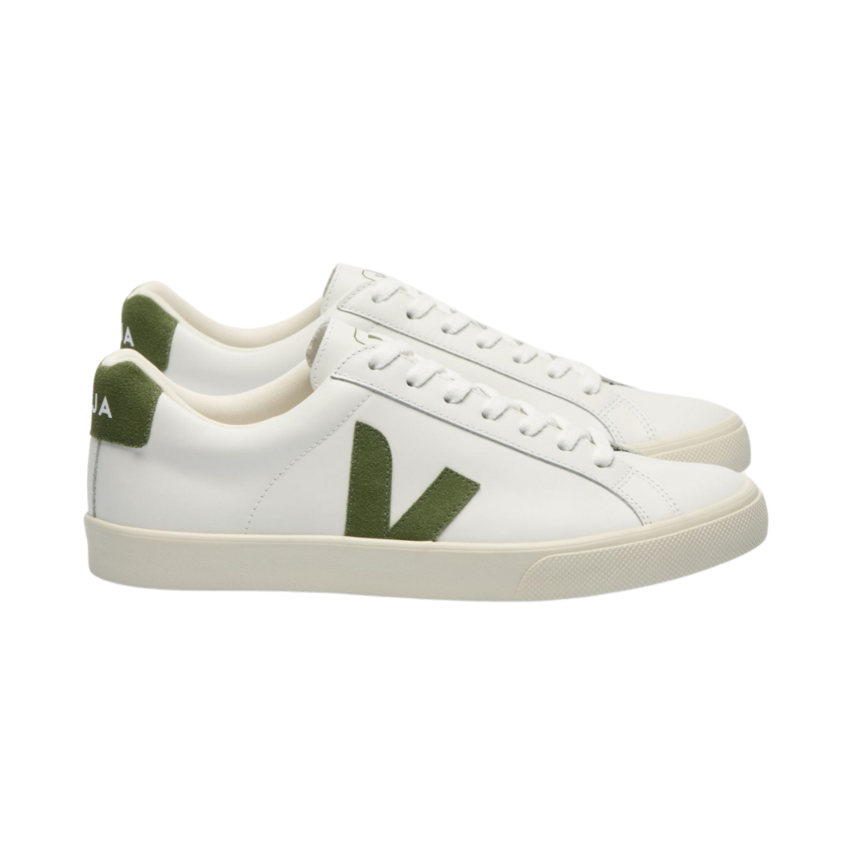 These 'Extra White' sneakers by Veja for men feature a kiwi green logo and leather construction.