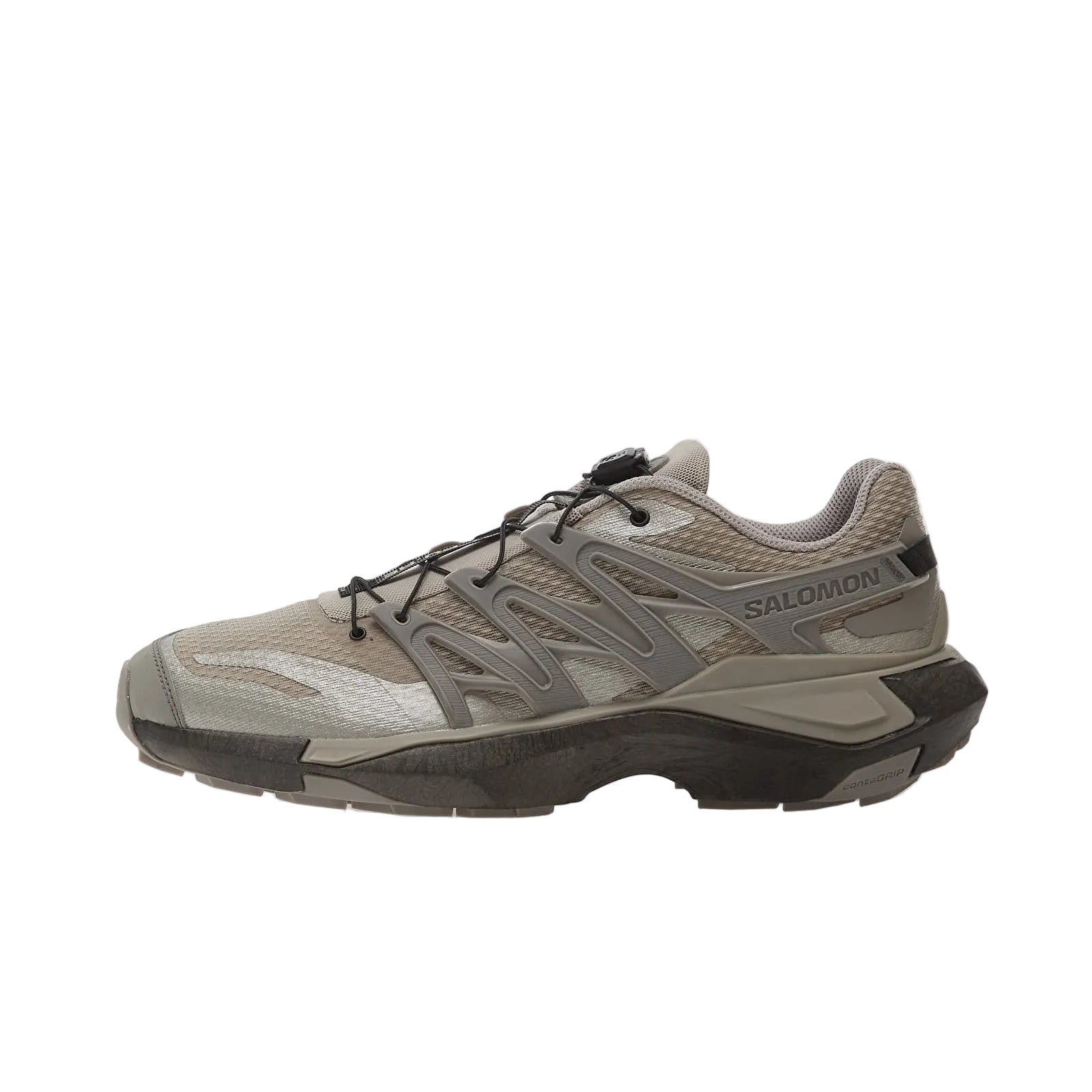 Contagrip®: Highly sophisticated sole technology developed by Salomon that integrates insights from biomechanics and materials engineering. This outsole is not made up of a single compound, but a combination of several types of rubber of different densities that are strategically placed throughout the sole. As a result, Contagrip® provides an optimal balance between grip and mechanical resistance. Each variant of this sole is specifically tuned for a particular discipline - from road running to technical trail running to alpine hiking.