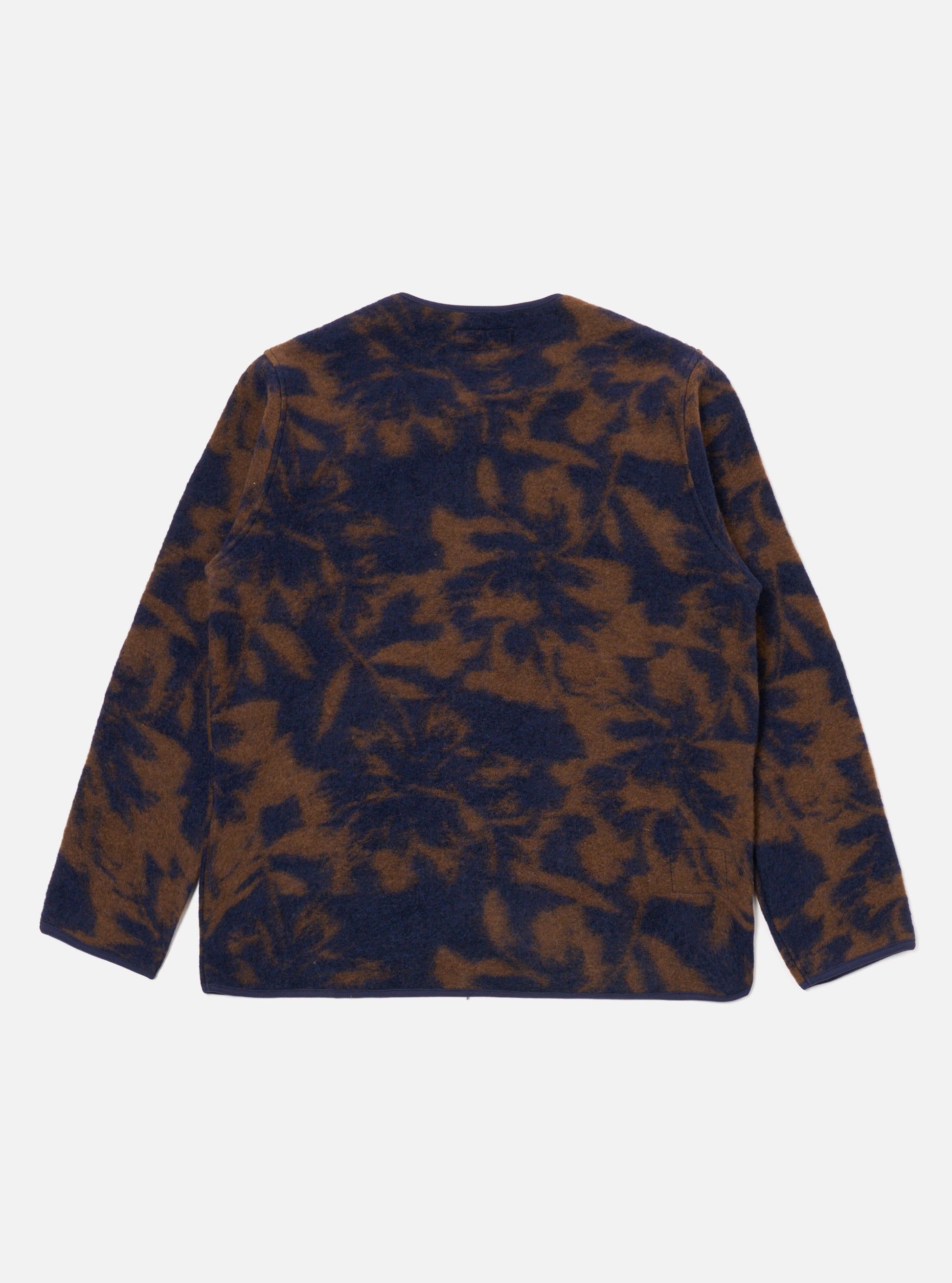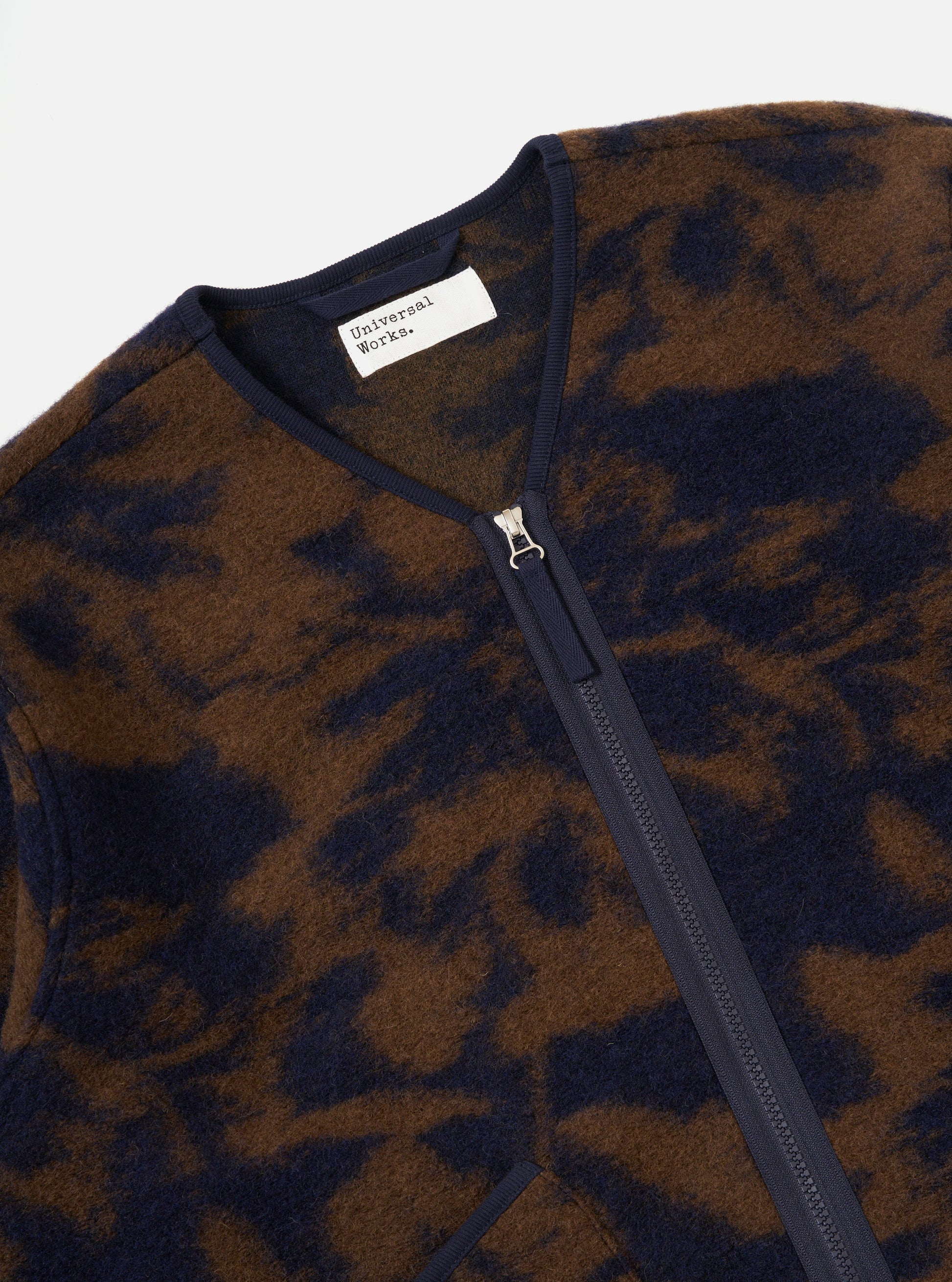 A loose-fitting, military-esque liner jacket. Unstructured, with an exposed zip and two patch pockets.