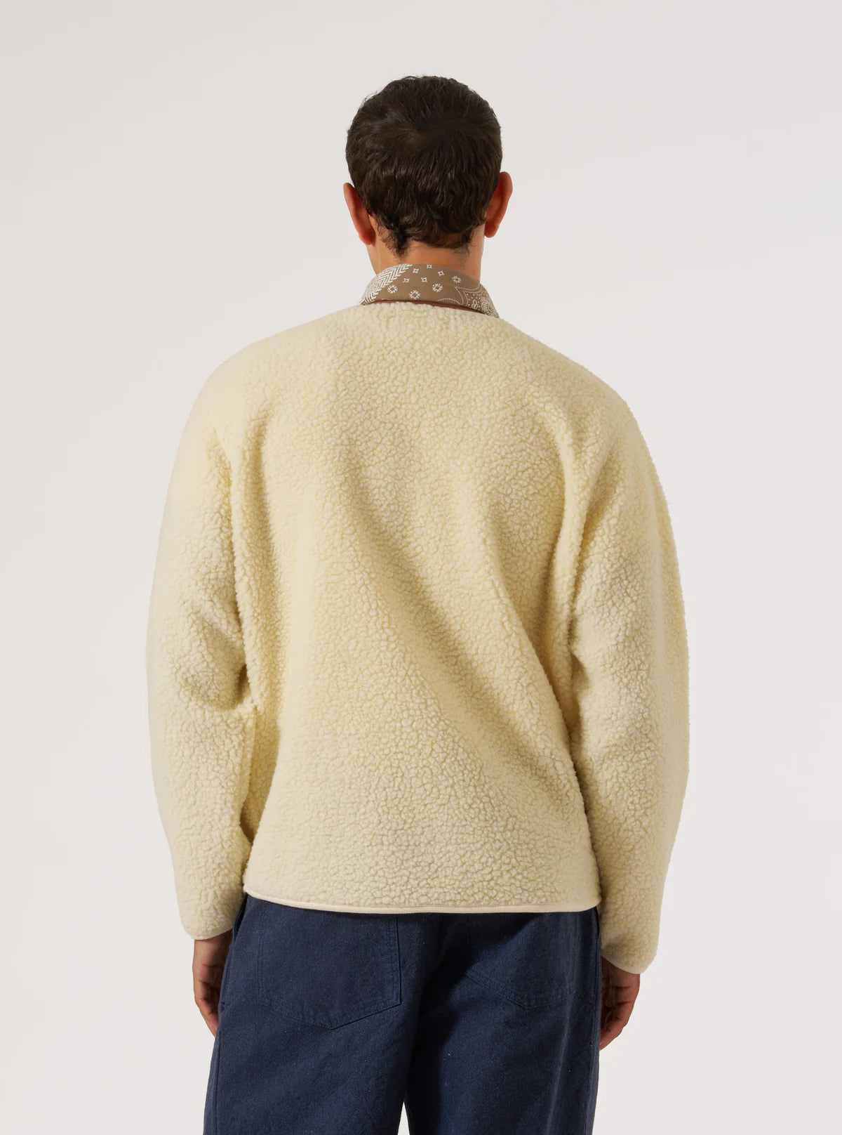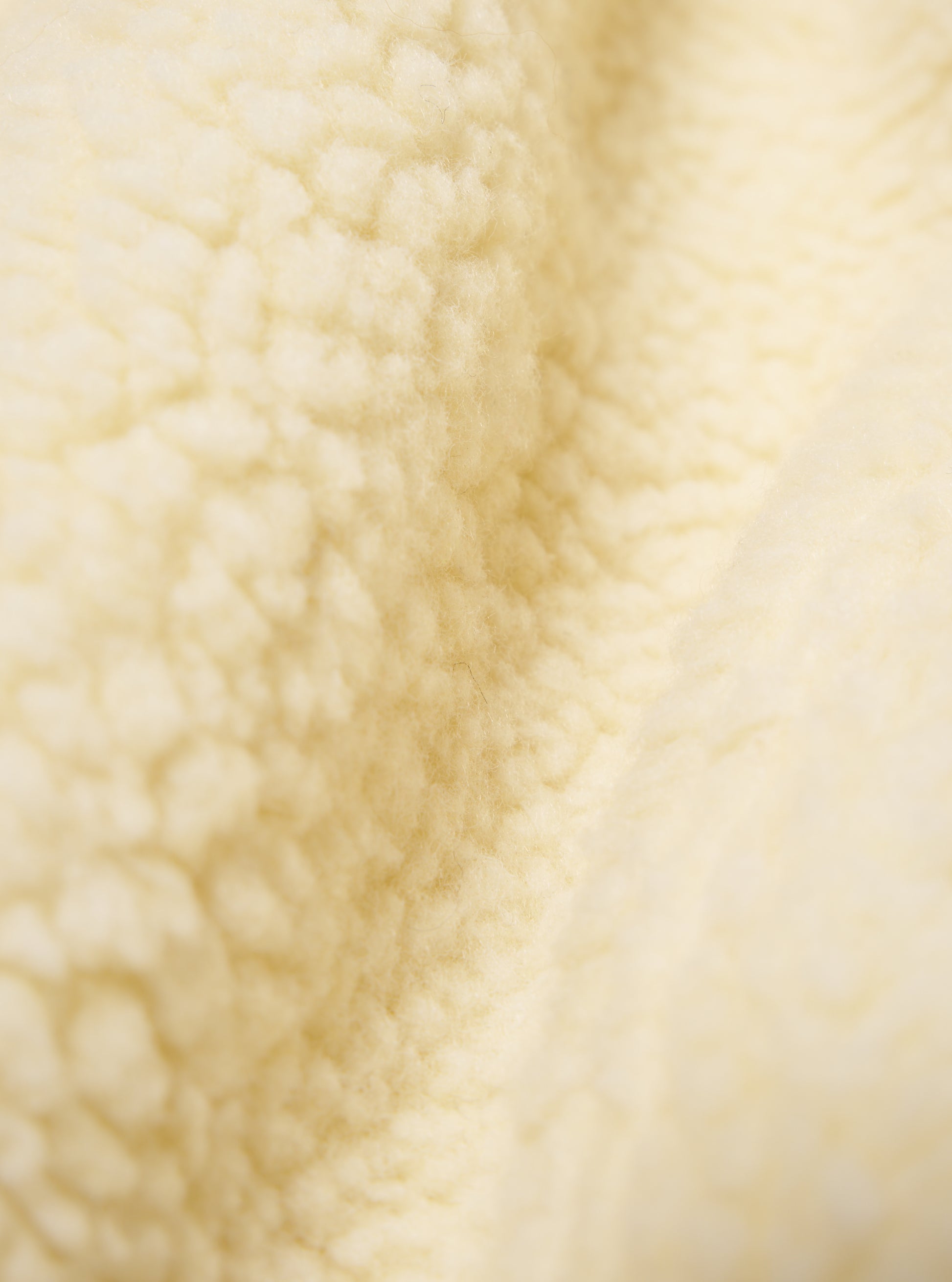 A loose-fitting, military-esque liner jacket. Unstructured, with an exposed zip and two patch pockets.