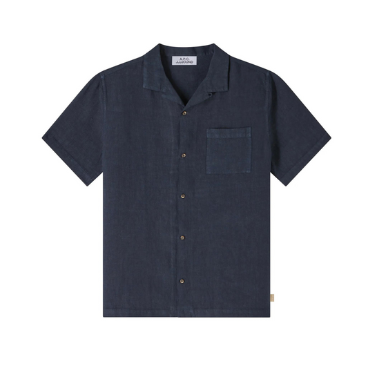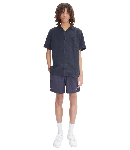 CALCITE BLUE ROLLO COTTON LINEN SHORT SLEEVE SHIRT