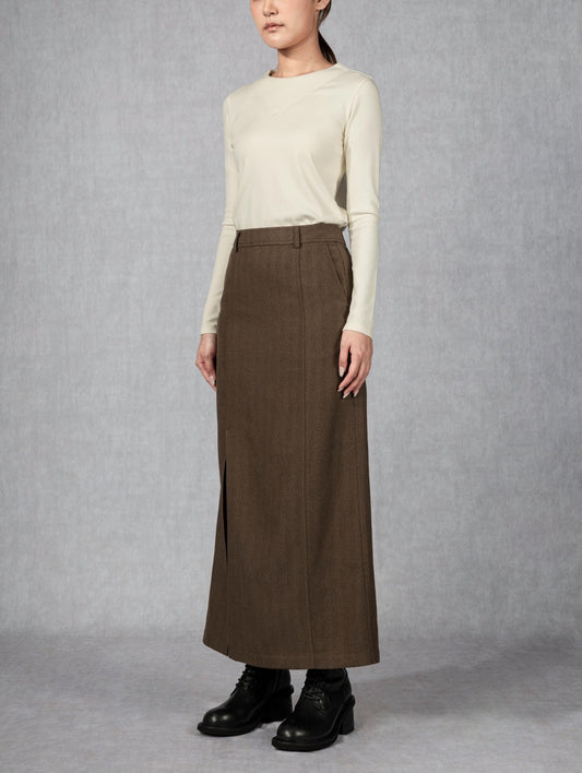 HERRINGBONE PENCIL SKIRT HERRINGBONE DK COFFEE