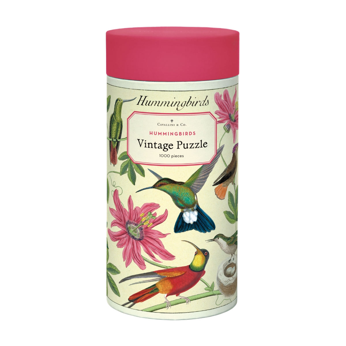 Cavallini & Co. Hummingbirds 1000 Piece Puzzle- new for 2023. This puzzle features a collection of hummingbirds.