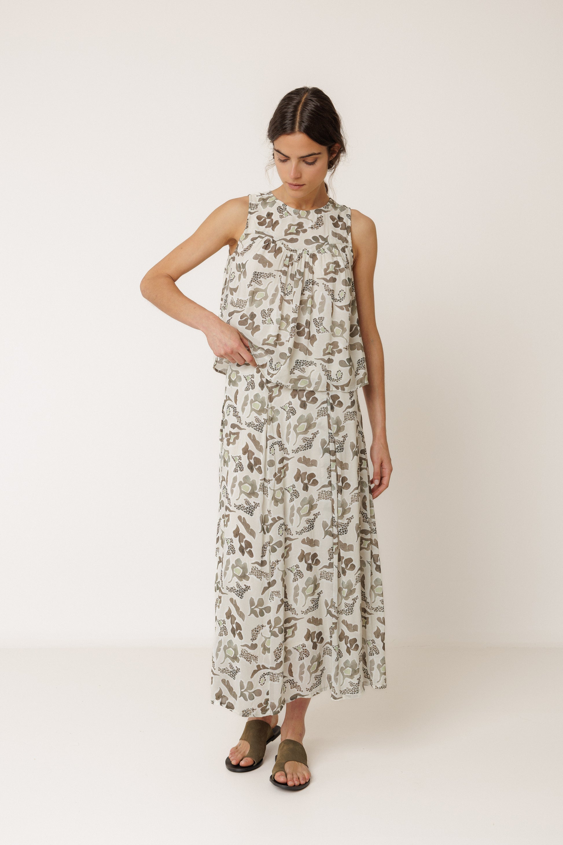 •  Sustainable viscose georgette fabric with a maxi watercolor print, slightly sheer.