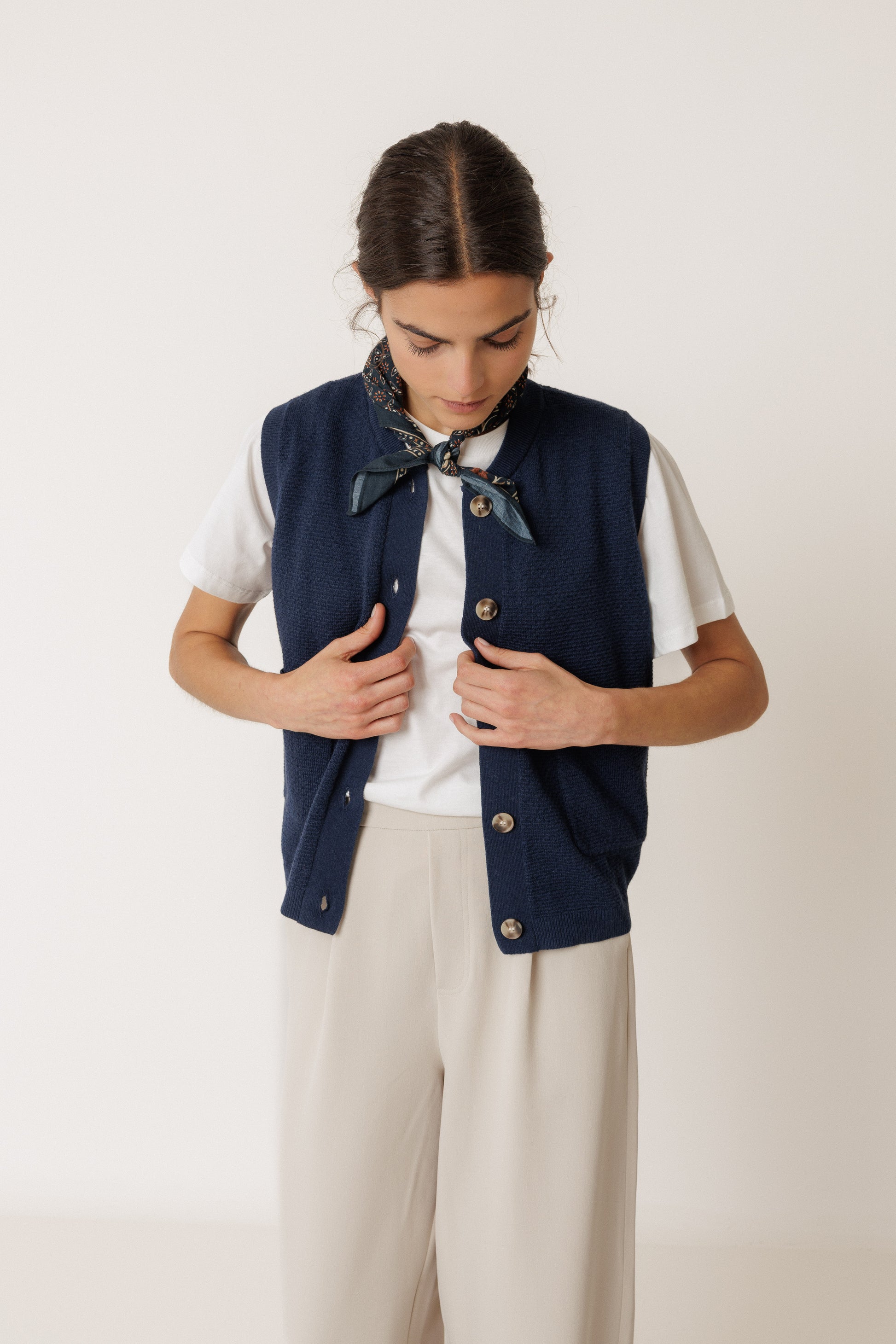 • Ribbed knit on the neck, sleeves and bottom hem.