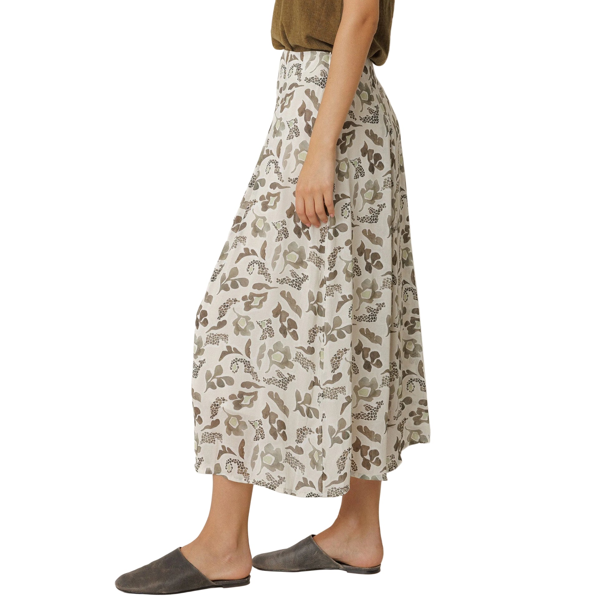 •  Sustainable viscose georgette fabric with a maxi watercolor print, slightly sheer.