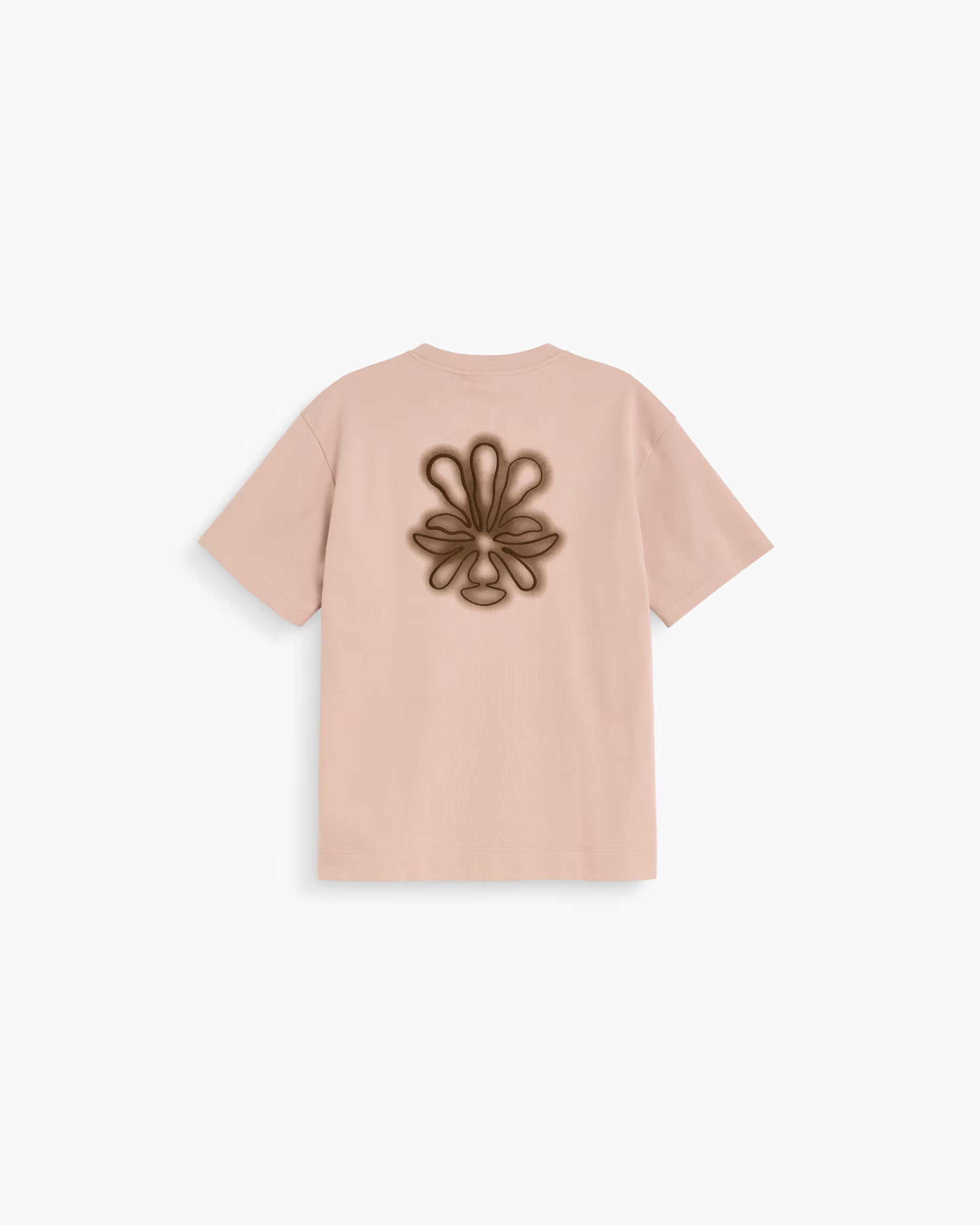 Pink heavyweight cotton t-shirt with brown abstract print on the back. Made from dense interlock jersey. Relaxed fit with a classic crewneck.