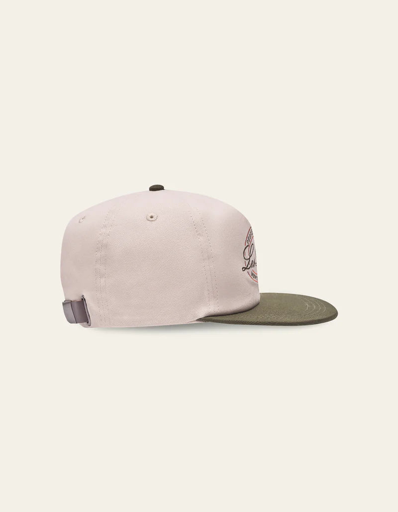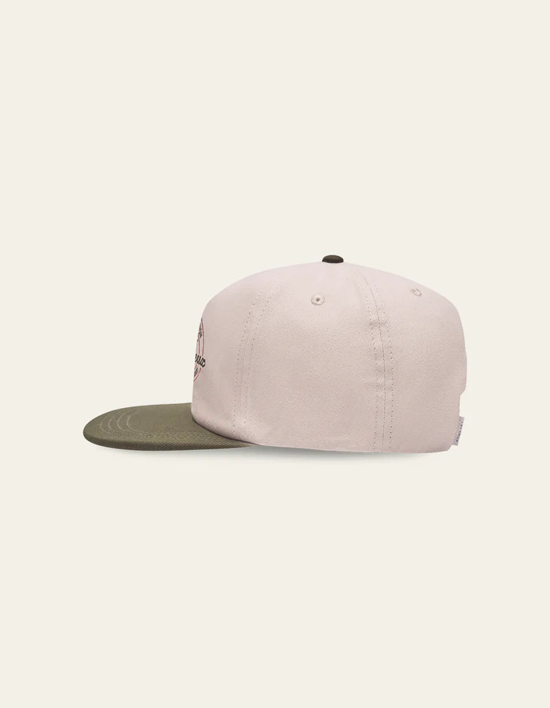 A cotton snapback with lettering art embroidered on the front. It's finished with the classic high crown and flat brim.