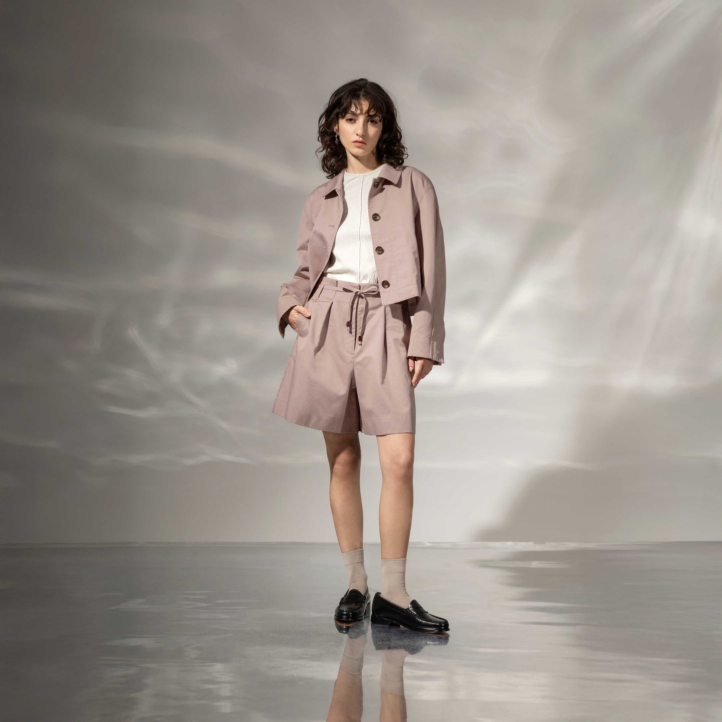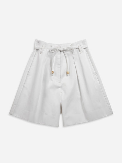 Our trendy Paperbag Belted Shorts are the perfect choice for weekend getaways. The belted waistband is accented with a chic rope knit detail, and slightly A-line cut offers a relaxed silhouette. Pair it effortlessly with our matching Cropped Boxy Jacket for a complete look.
