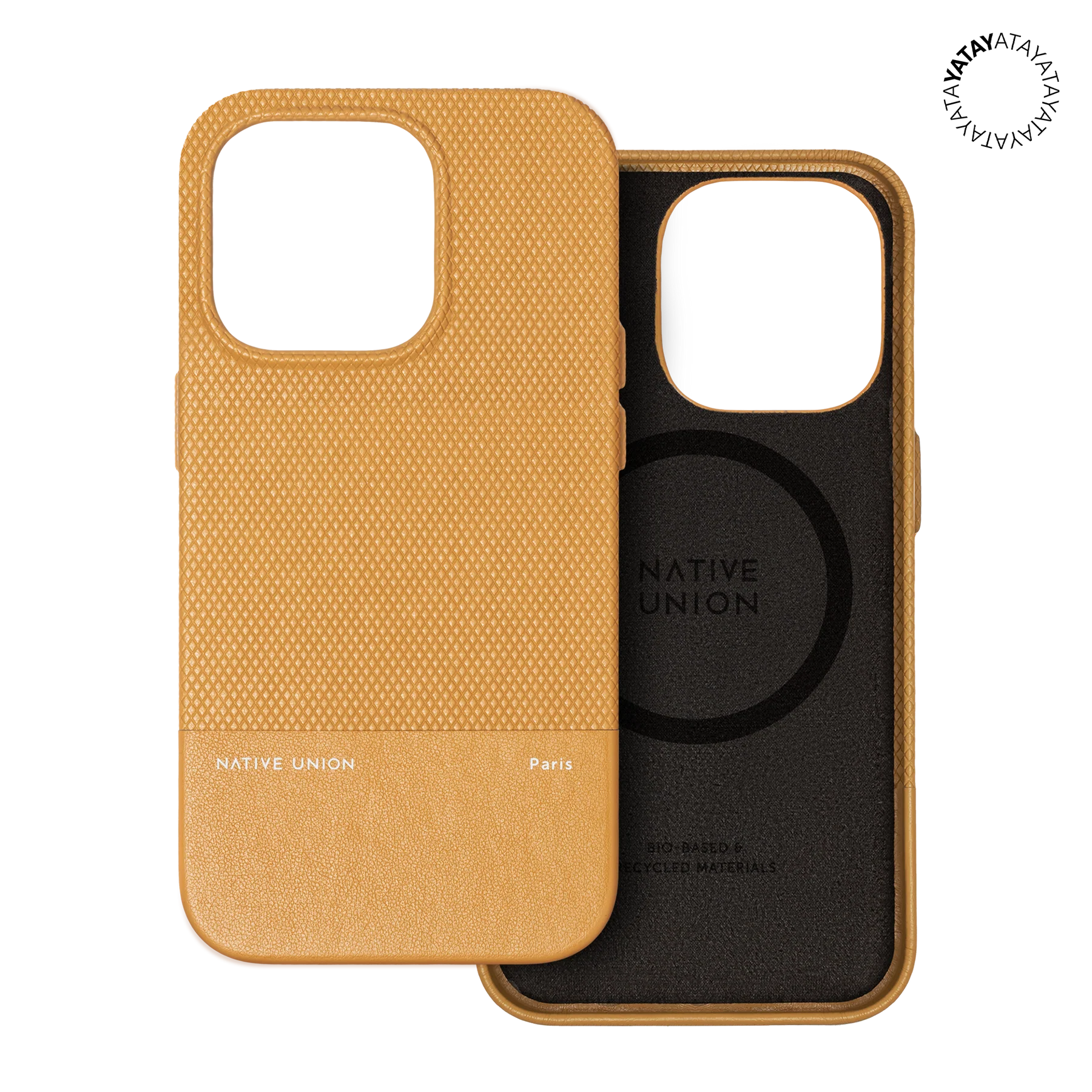 Textured elegance for your iPhone, made better for the Earth with eco-conscious and recycled materials. The timeless contrast of smooth and cross-grained leather is reinterpreted with an animal-free leather alternative for low impact, long lasting protection.
