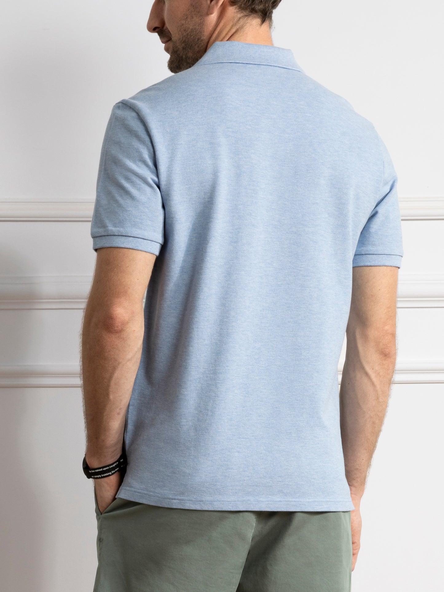 The 'Sasco Pique Heather Polo' by O.N.S. offers a classic polo style in a heathered pique fabric.