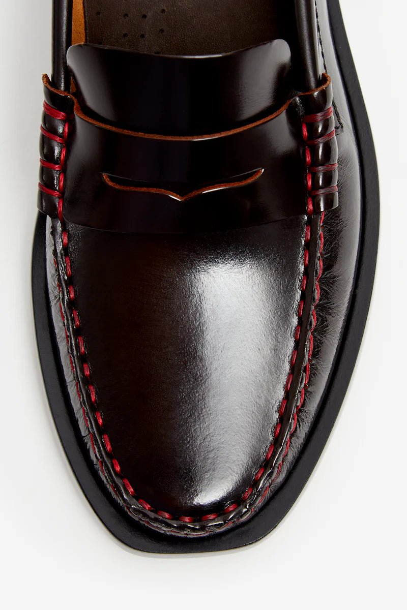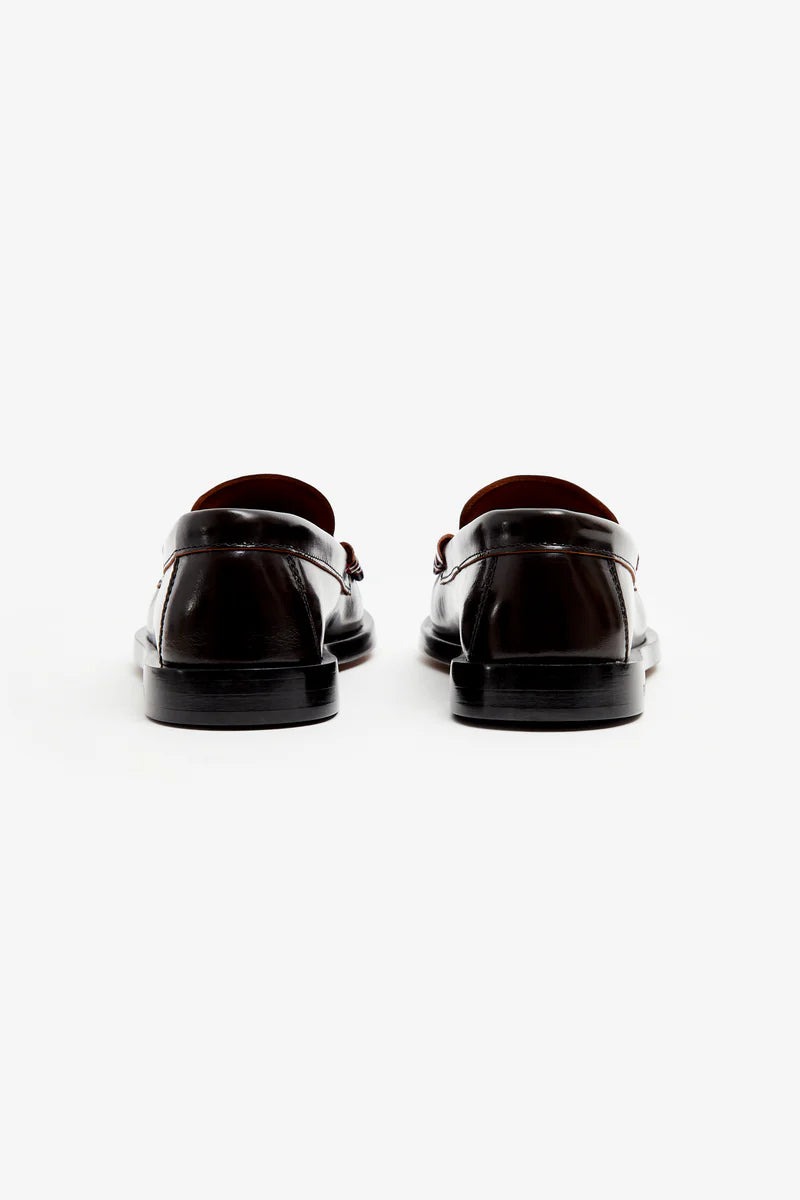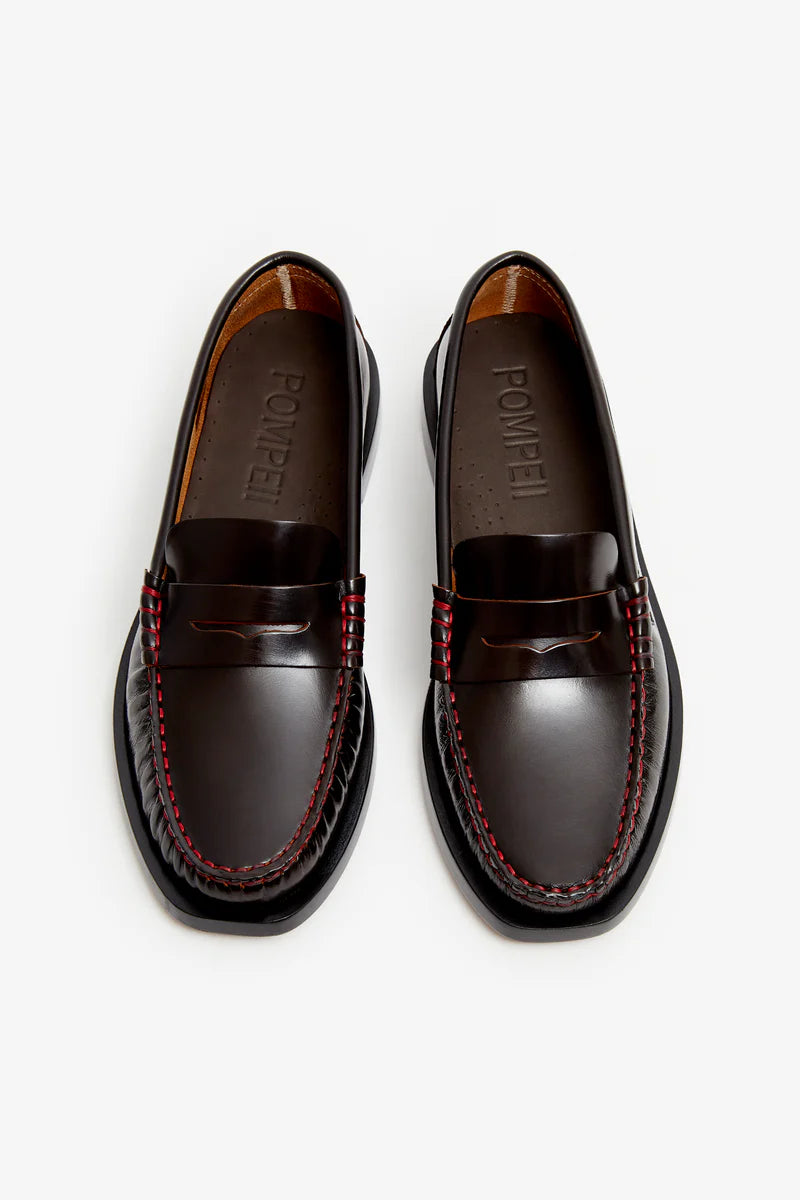 Moccasin made in antik leather, with contrasting stitching on the vamp and handmade in Spain, following traditional craftsmanship techniques. With a slightly squared toe and 100% leather sole, it offers a perfect combination of elegance and comfort for any occasion.