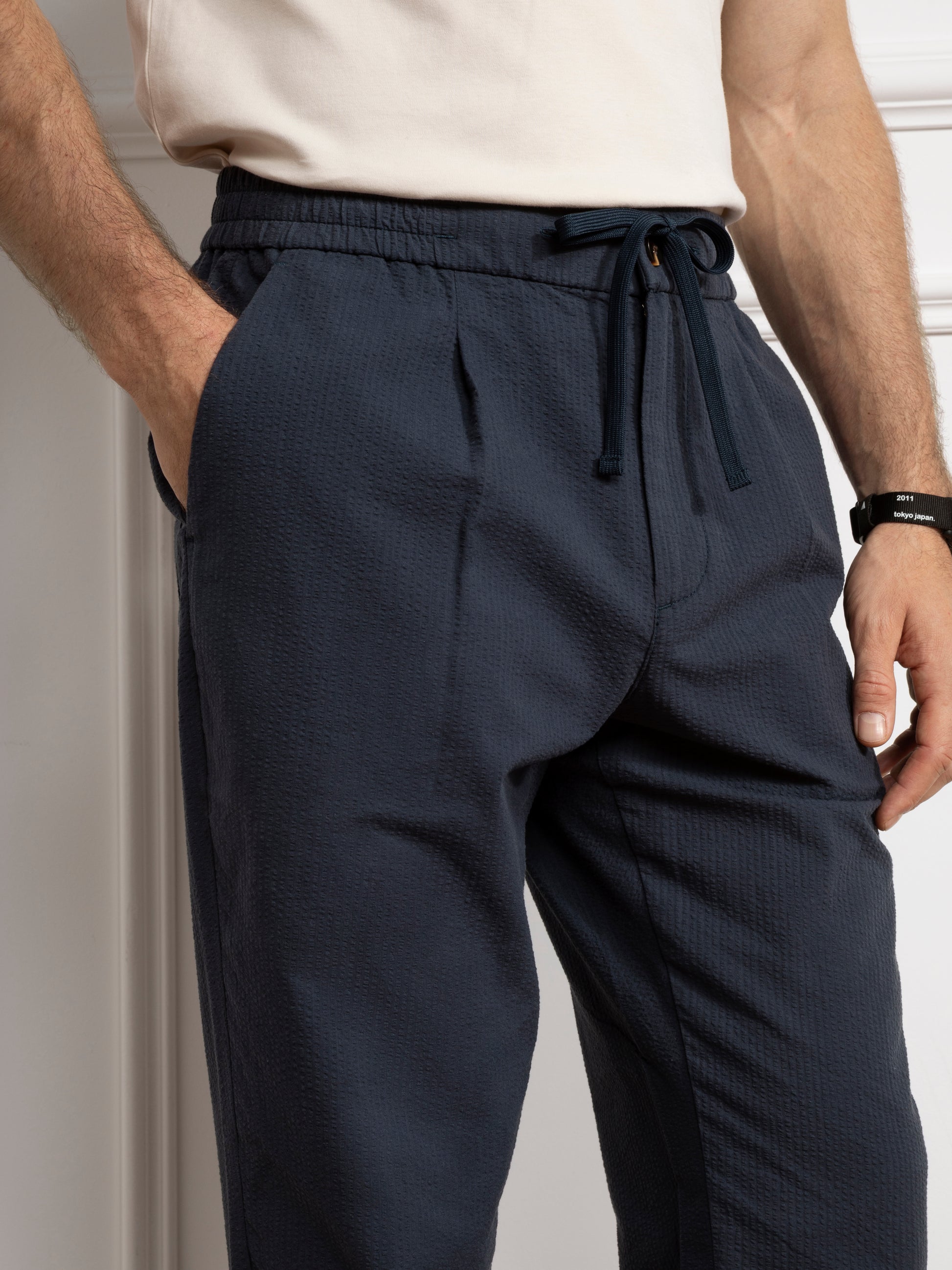Effortlessly combine comfort and laid-back sophistication with the Wayne Seersucker Trousers. These ONS 100% cotton pants feature a side elastic waistband for a flexible fit, and a lightweight fabric for easy movement. Perfect for casual outings or warm-weather occasions. Pairs nicely with a Rockaway Seersucker Shirt to complete the whole look.