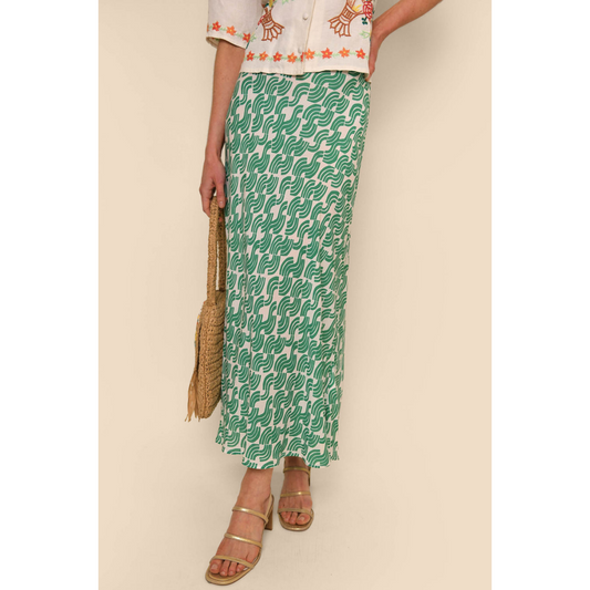 KELLY SKIRT GREEN ABSTRACT WAVE