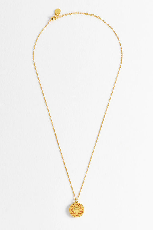 PINK ENAMEL MANDALA NECKLACE - GOLD PLATED