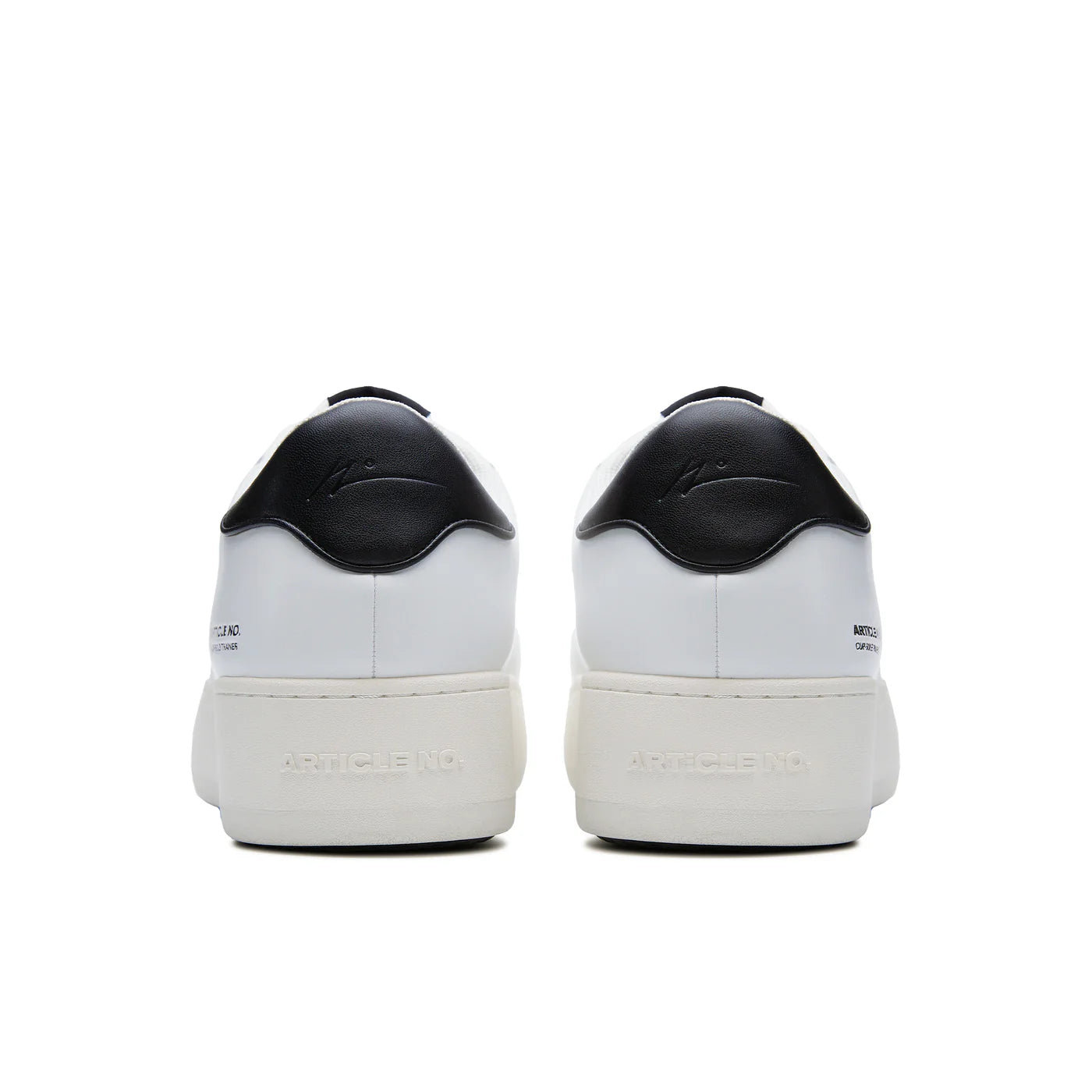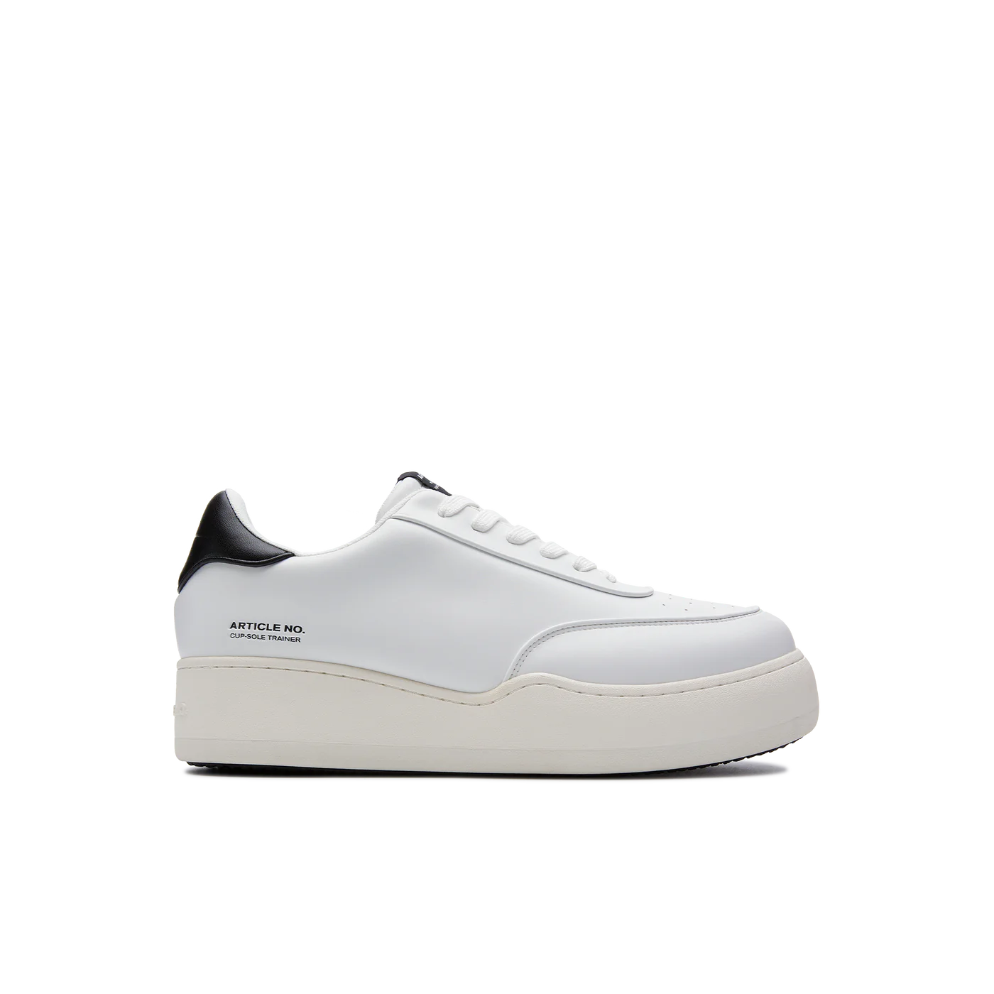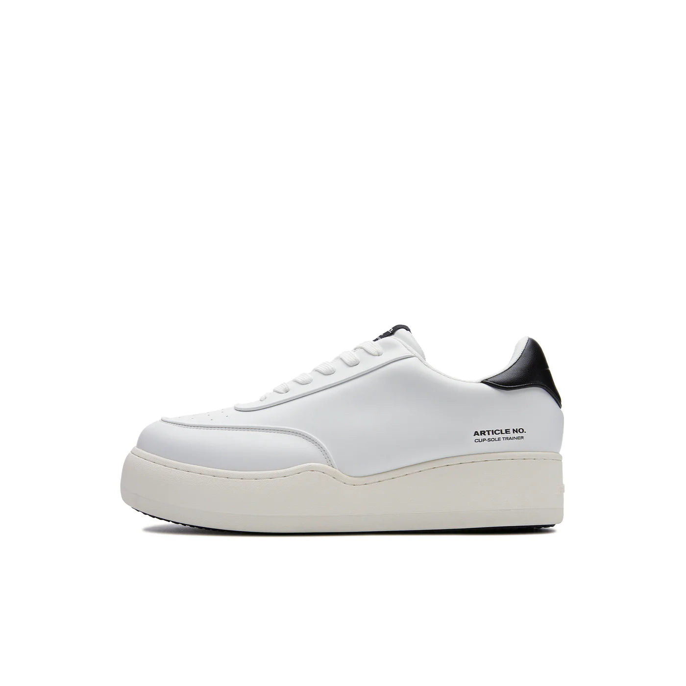These 'Burger Trainer' sneakers by ARTICLE NO. feature a white and black pleather design.