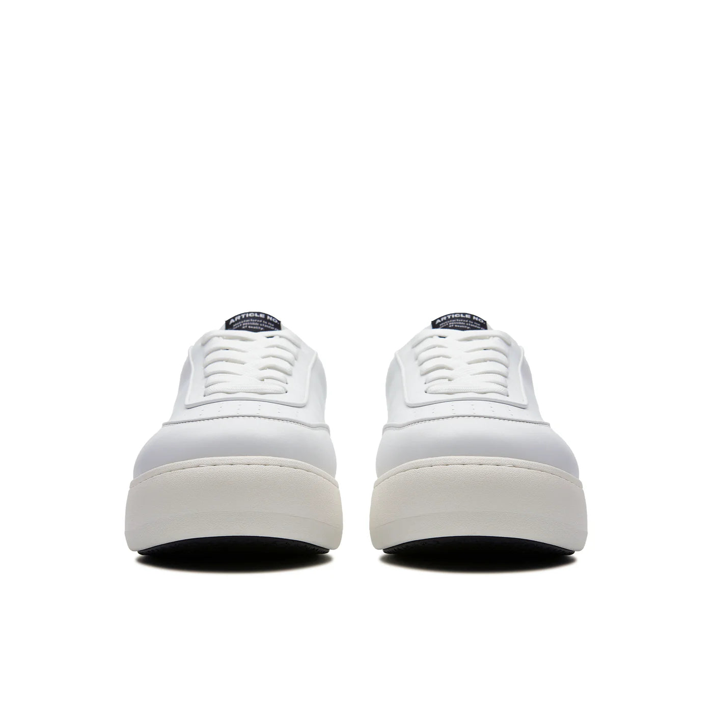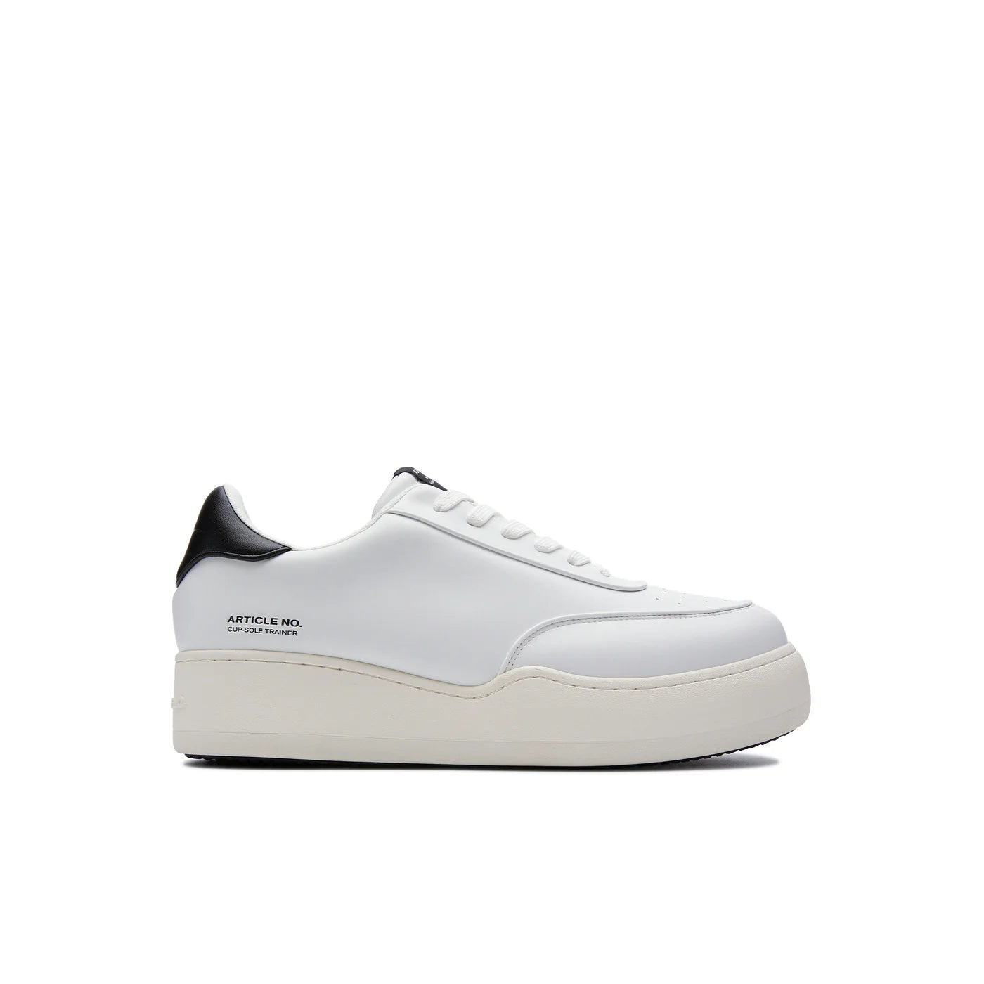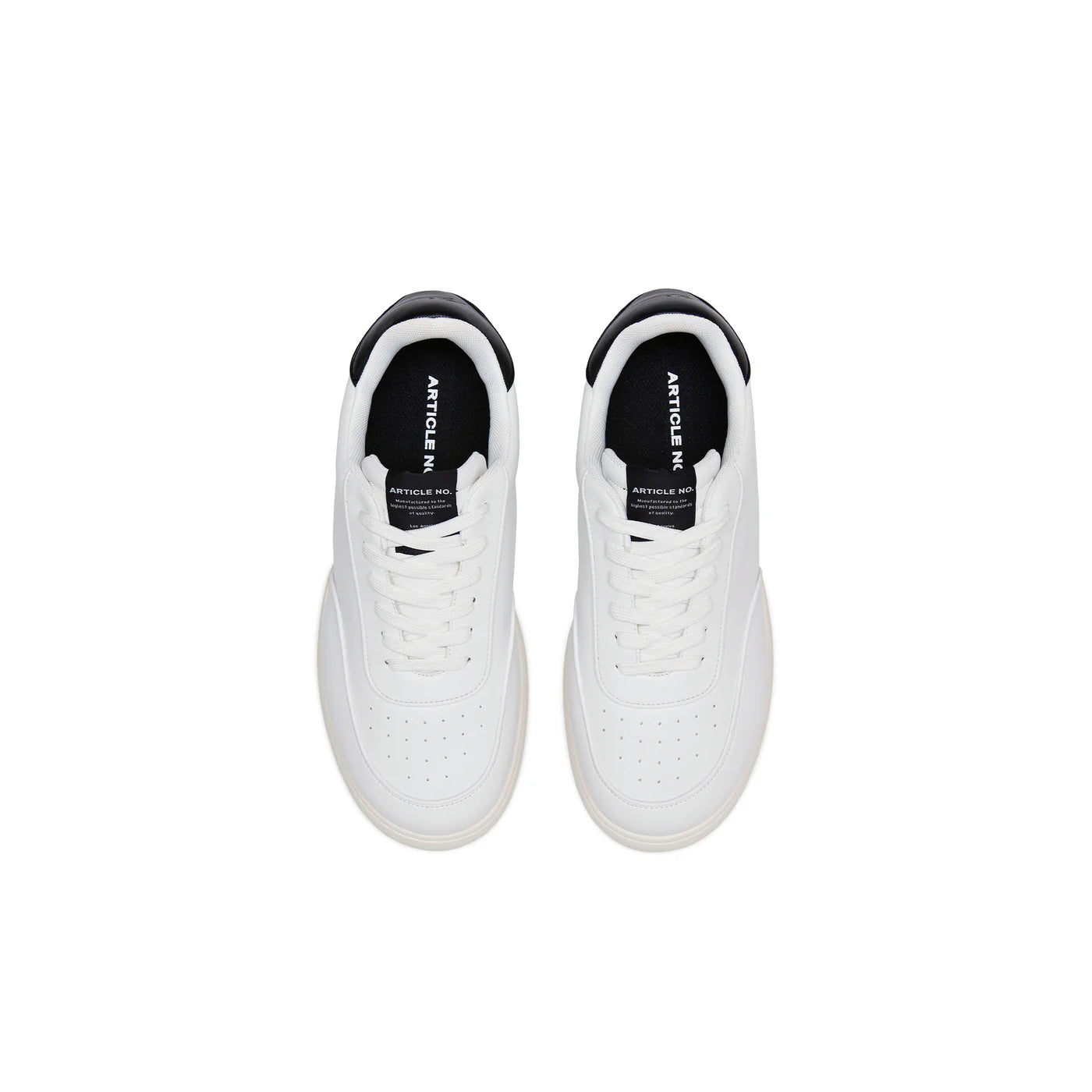 These 'Burger Trainer' sneakers by ARTICLE NO. feature a white and black pleather design.