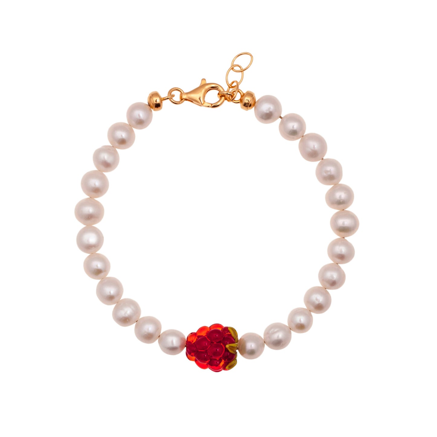 Handcrafted bracelet made out of natural sweet water pearls class A with 24K gold plated silver elements.