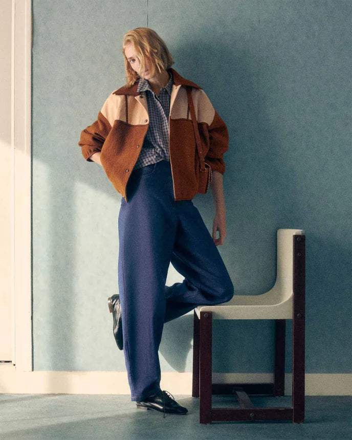 Back yoke with flat pleat detailing.