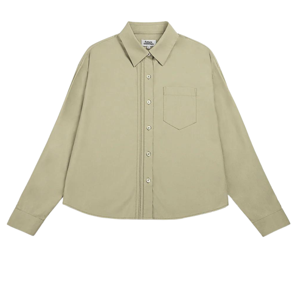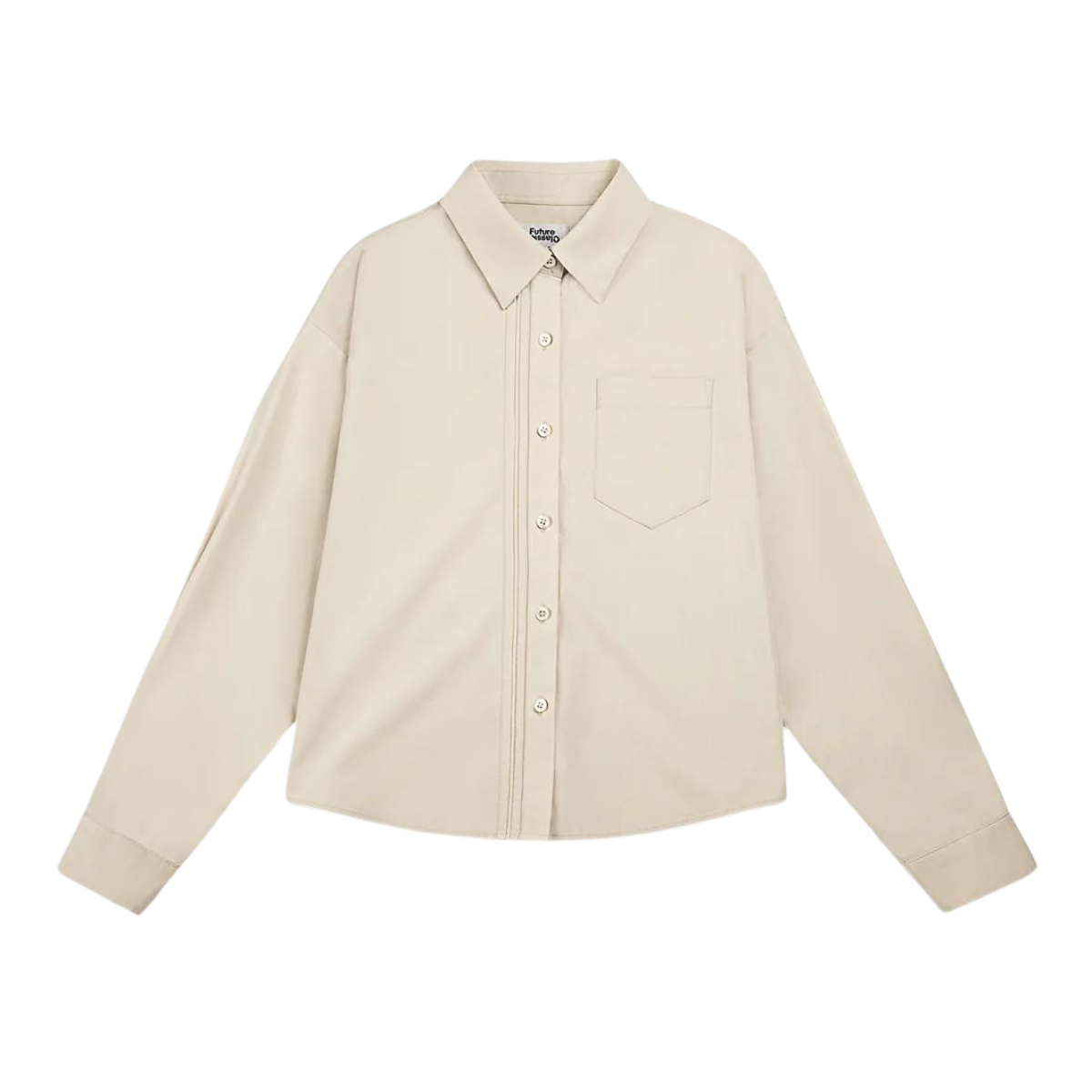 Our Piping Crop Boxy Shirt is our contemporary interpretation of a wardrobe staple. Our boxy cut is the ultimate effortless button up shirt with subtle piping details with a chest patch pocket. FC signature bartack adorns the back pleat. Cropped right around your hip, it's the perfect no tuck shirt while still looking chic and professional.
