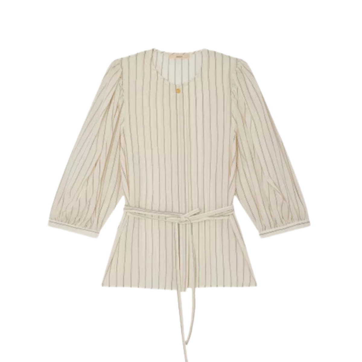 Blouse with 3/4 -length sleeves and side-tie drawstrings at the waist in lyocell poplin with fancy stripes, woven in Italy. Exclusive to Sessùn.