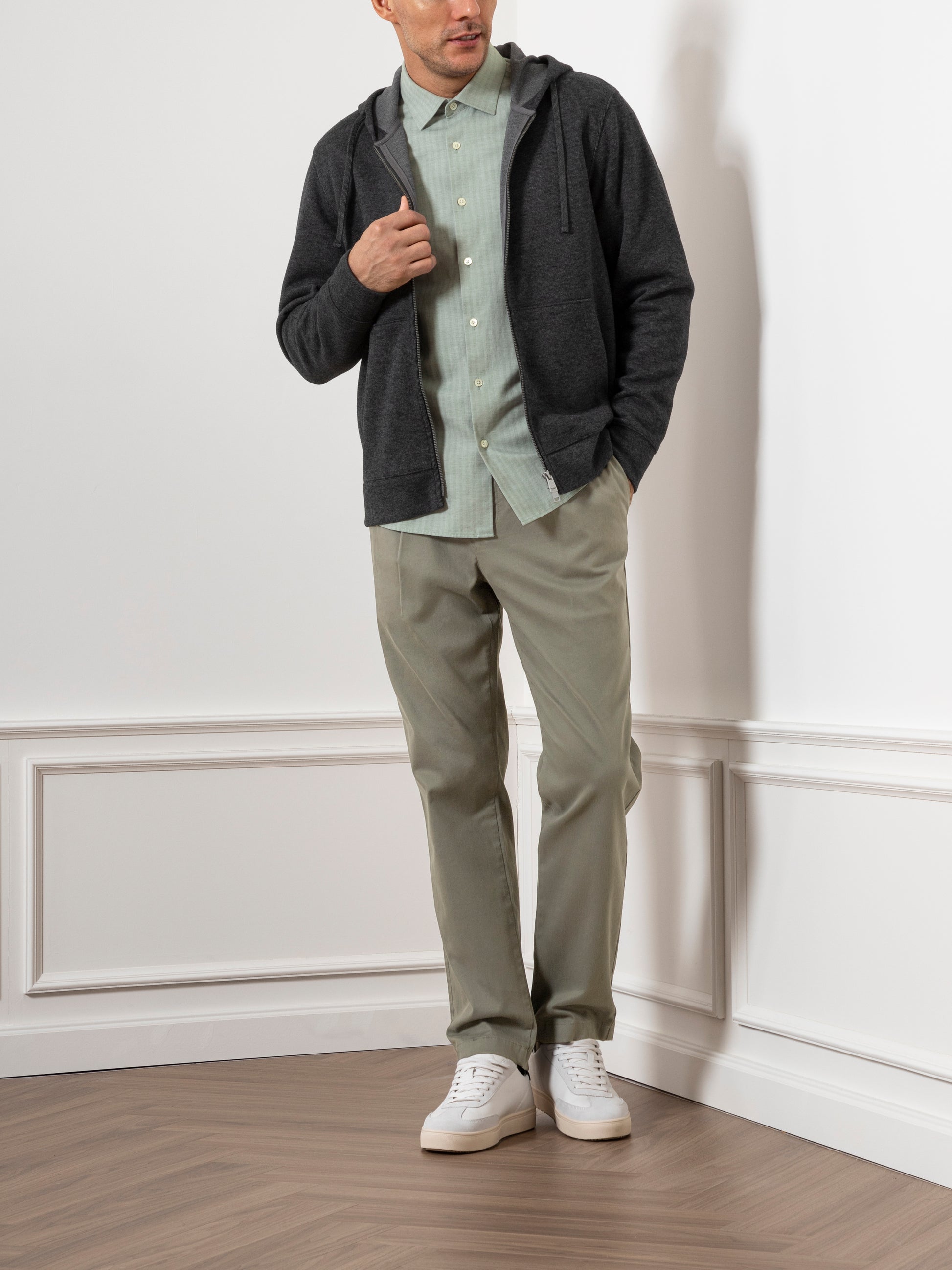 The Harper Zip Hoodie features a double knit fabric with a ribbed bottom and drawstring hood, offering luxurious softness and excellent insulation for winter. Designed to hold its shape, it maintains a structured, masculine style with modern versatility. Easy to care for and built for durability, this hoodie combines utility and comfort, making it perfect for relaxed wear or outdoor activities.