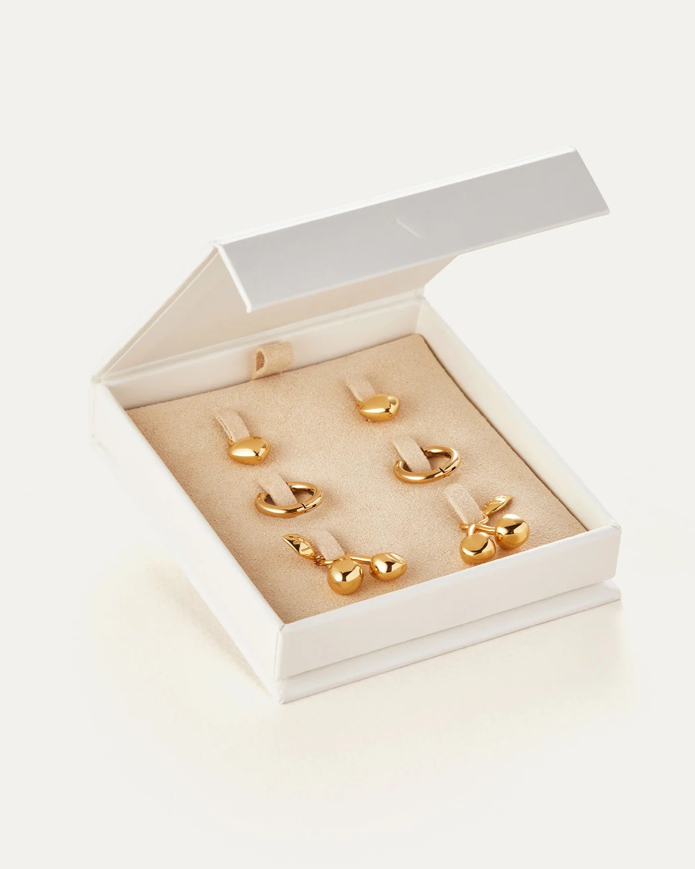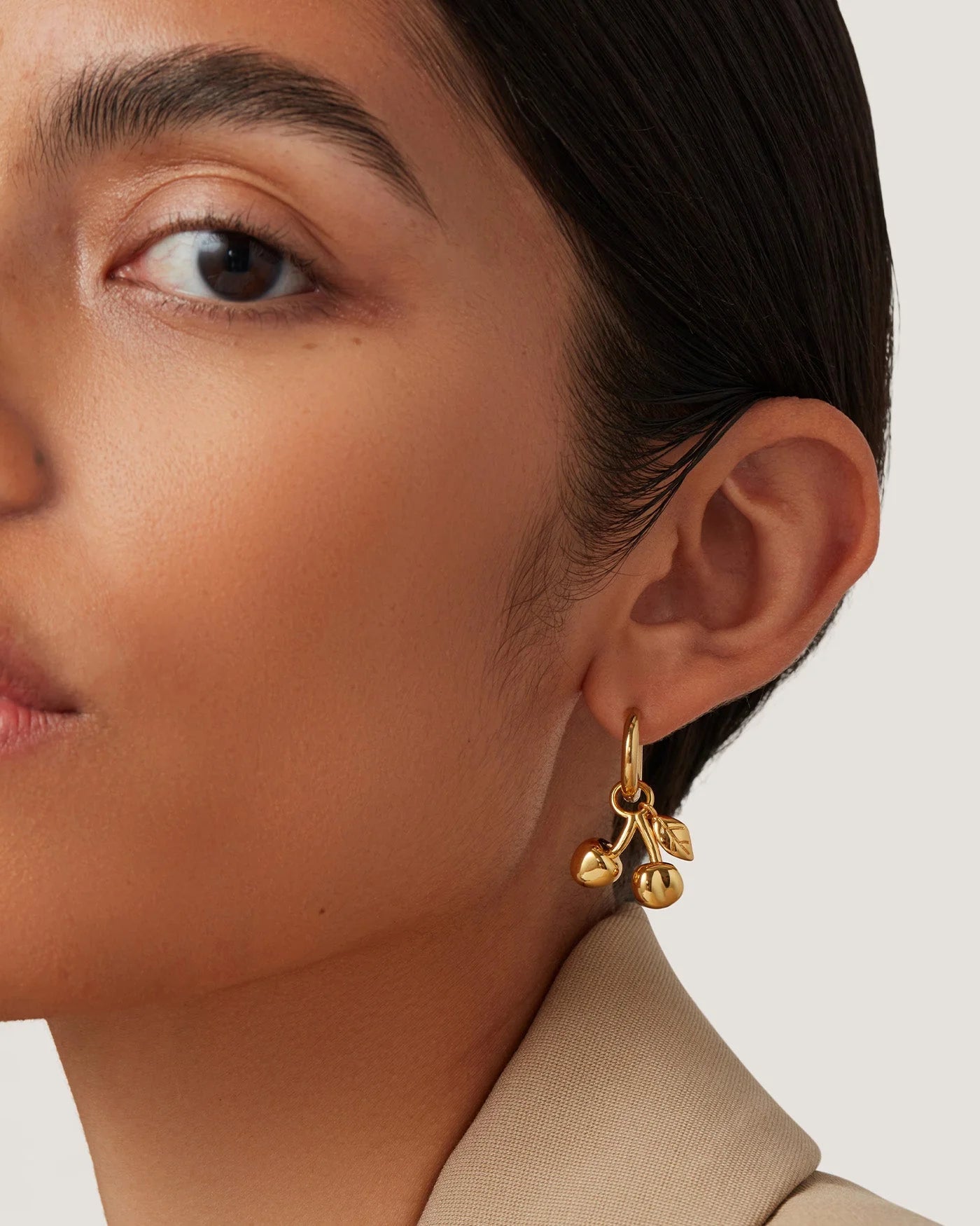 Puffy Heart And Cherry Huggie Play Kit High Polish Gold