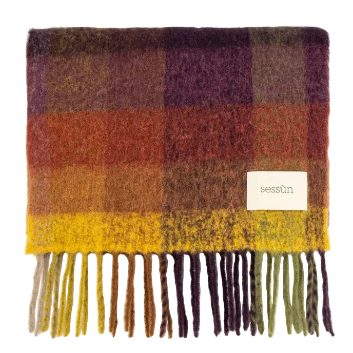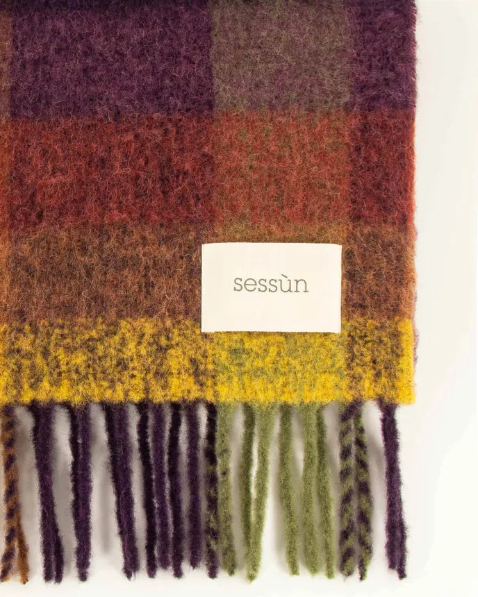 Plaid scarf with fringed edges woven in Italy featuring a Sessùn-embroidered label.